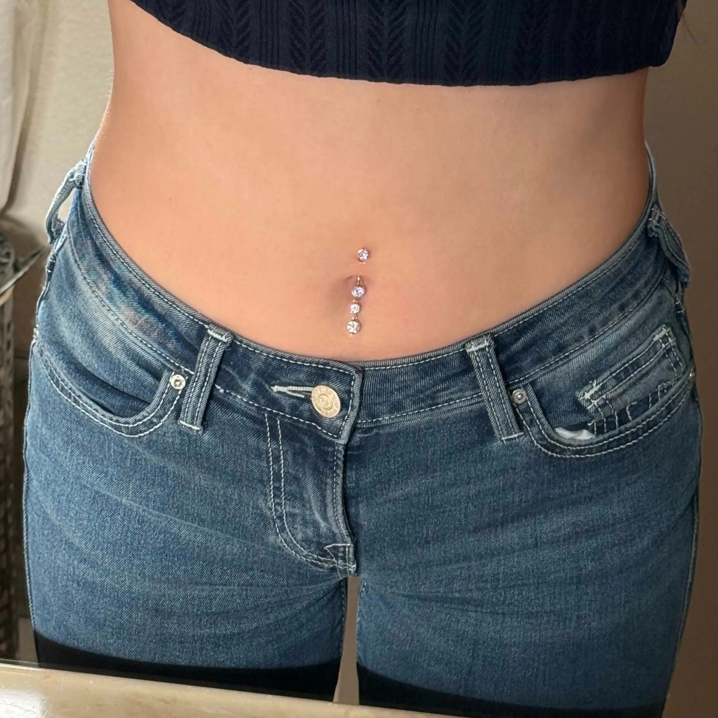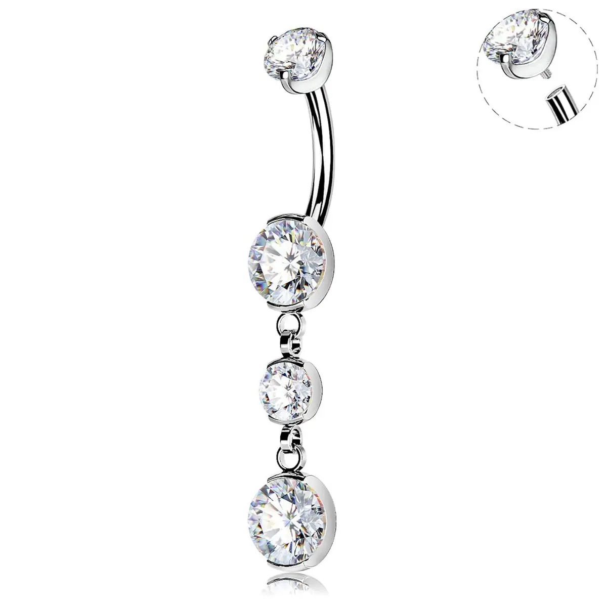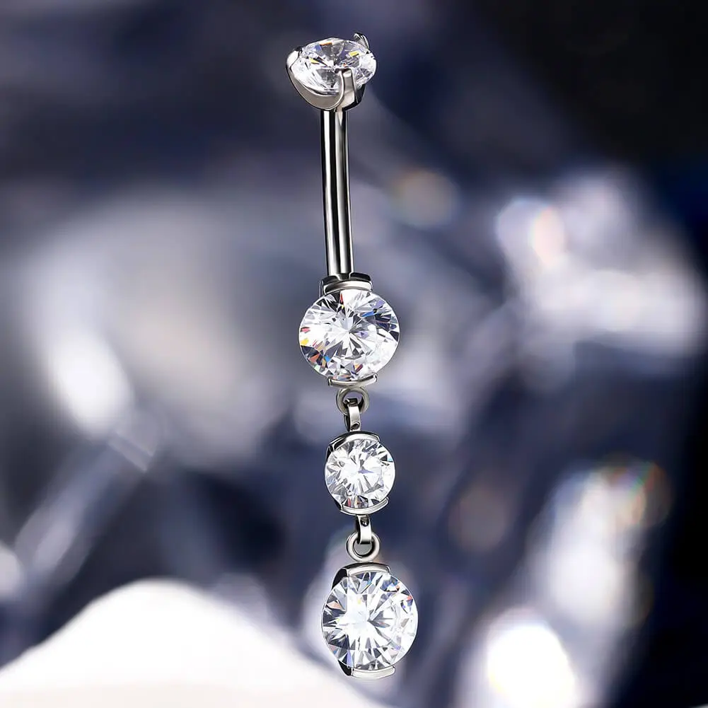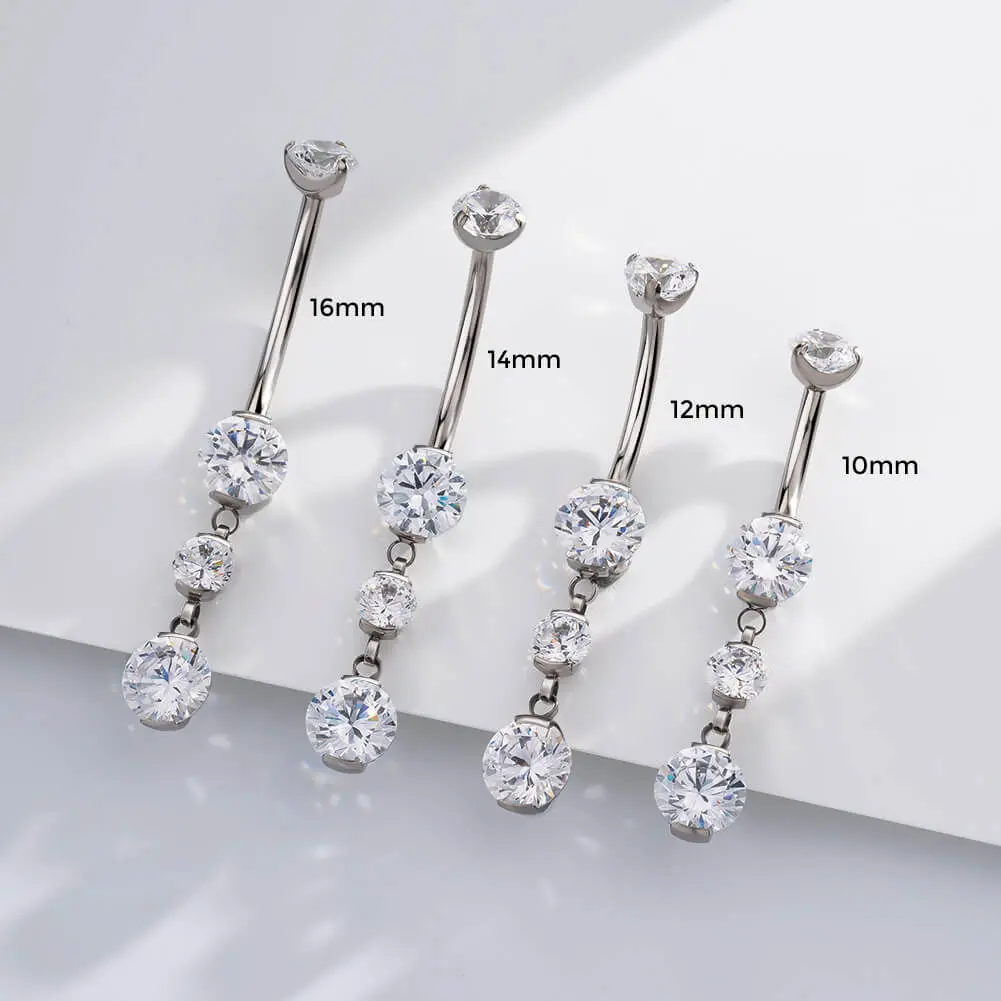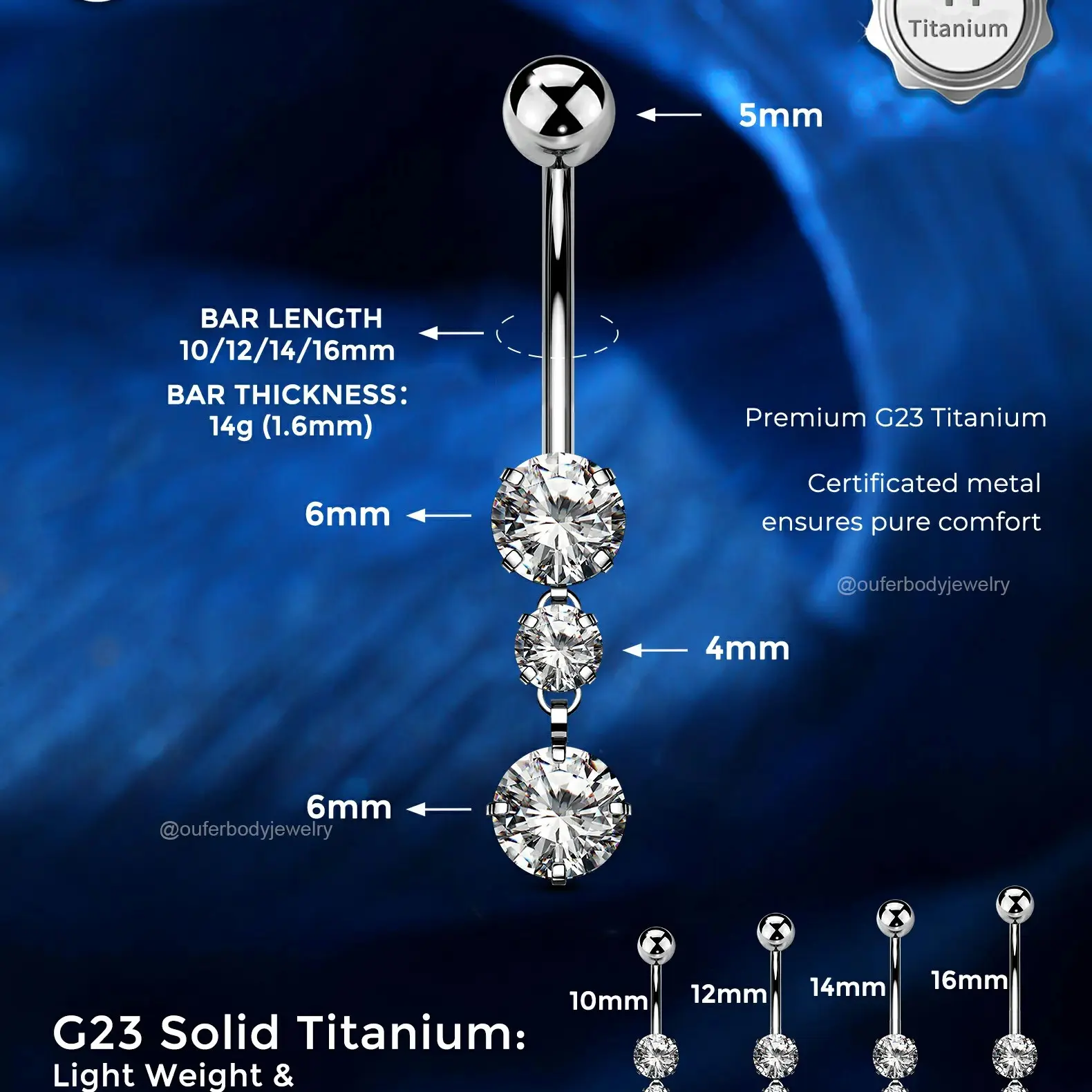 This Oufer Belly Button Ring features a dangle style with three sparkling cubic zirconia gems. It's designed to accentuate any look, making you stand out. The titanium construction ensures durability and lightweight comfort. Perfect for women seeking a trendy and stylish accessory.