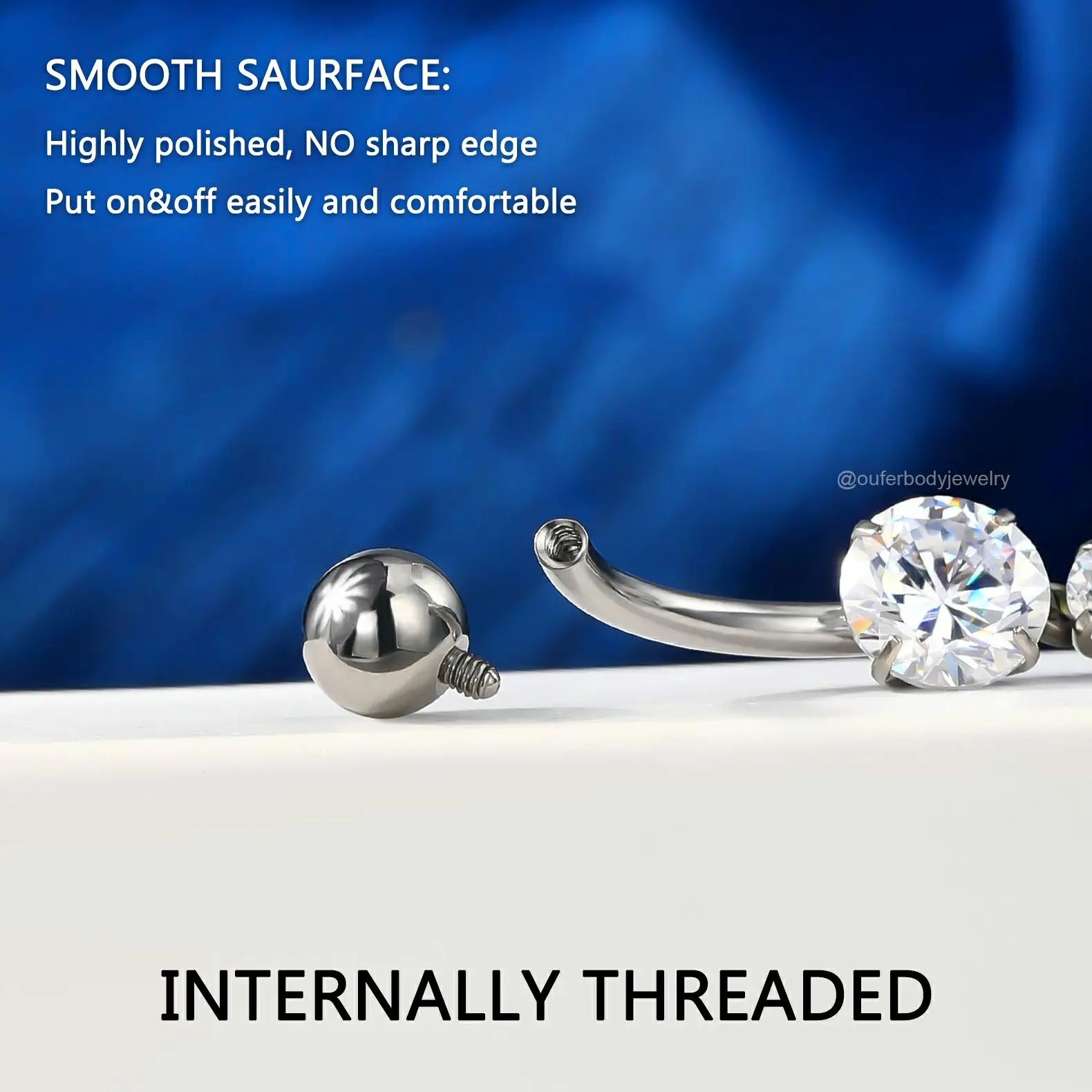 đ Size: 14G. Barlength options: 10mm, 12mm, 14mm, 16mm. Material: G23 Titanium. Hypoallergenic and comfortable for all-day wear. The internally threaded bar allows easy on/off without irritation.