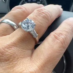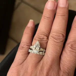 Love this ring. I got the pear shaped to wear on vacation. It’s very similar to my real ring so you can’t even tell which one I have on. Love it.