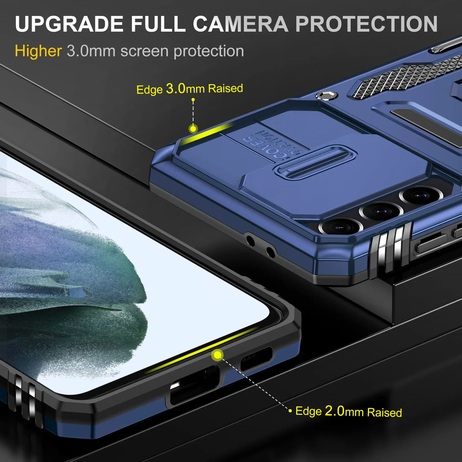 【Camera Proretection with Lens Slide design】Upgrade Full Camera Protection via Edge 3.0mm Raised & Camera Slide Cover,push to cover the the camera to prevent lens damage