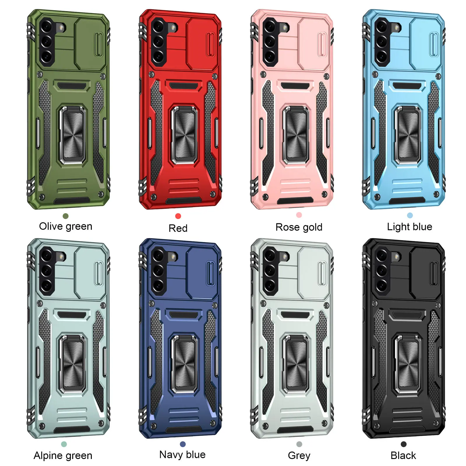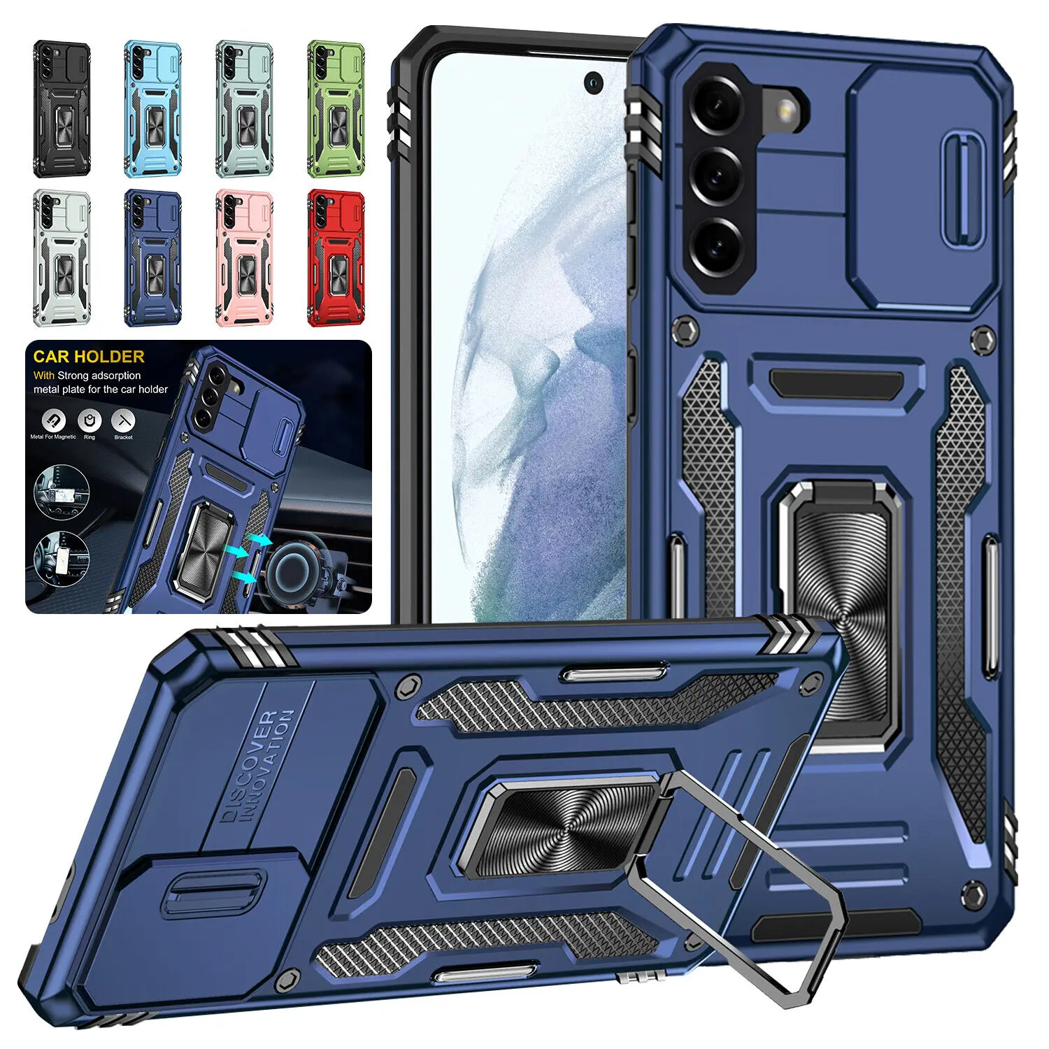 For Samsung Galaxy S23 S22 Ultra S21 S20 Plus S10 Shockproof Hard Amor Case Metal Ring KickStand with Dustproof Slide Camera Cover