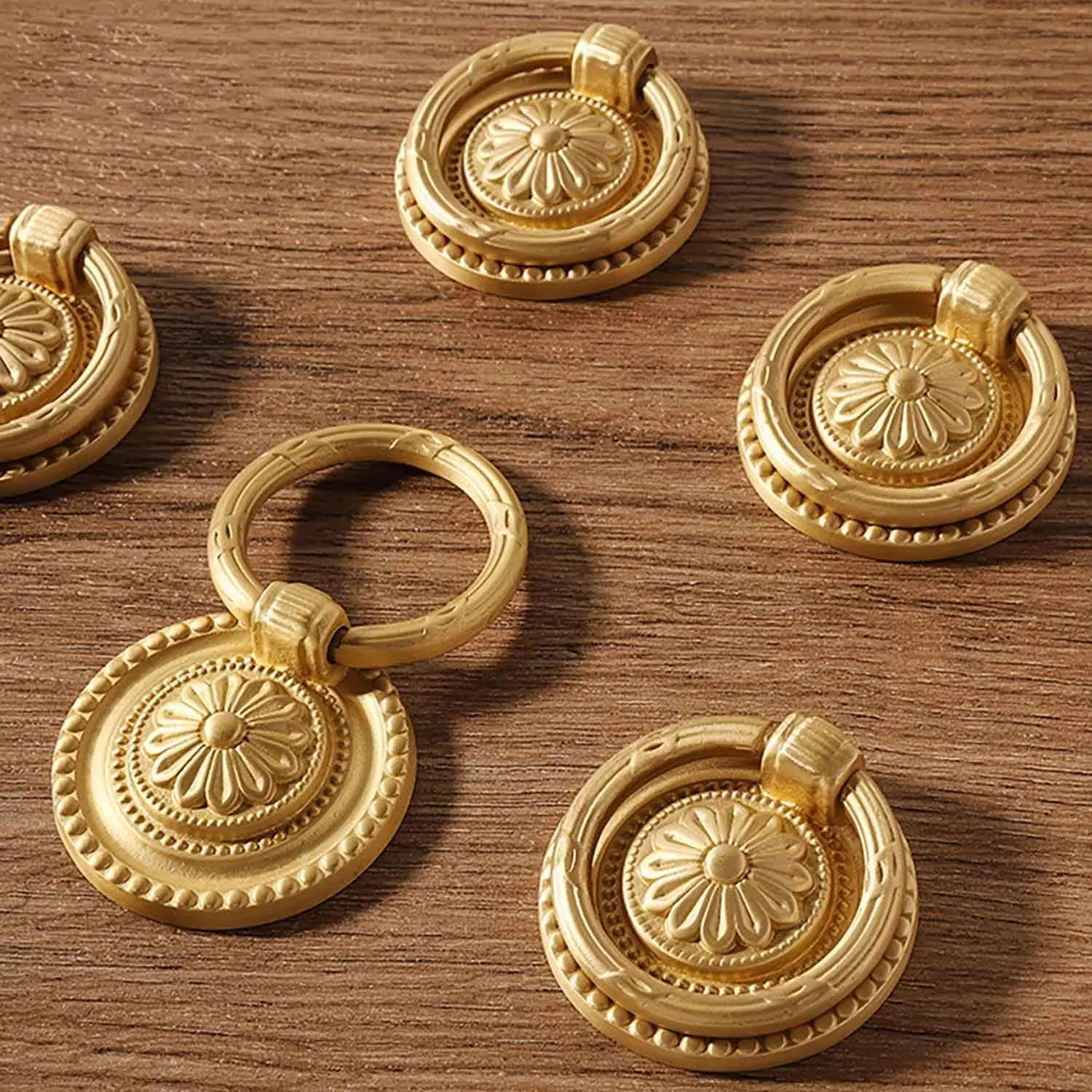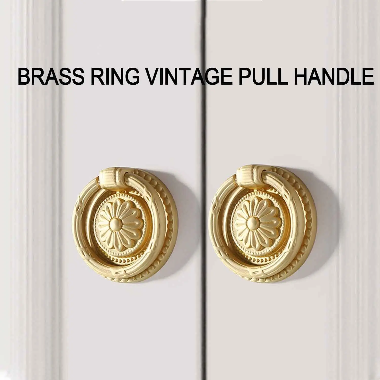 【RETRO FASHION】:Brass ring pulls are designed for easy retro style, not only attractive in appearance, but also durable and long-lasting Comes with a floral , adding a touch of elegance to your cabinets and drawers.
