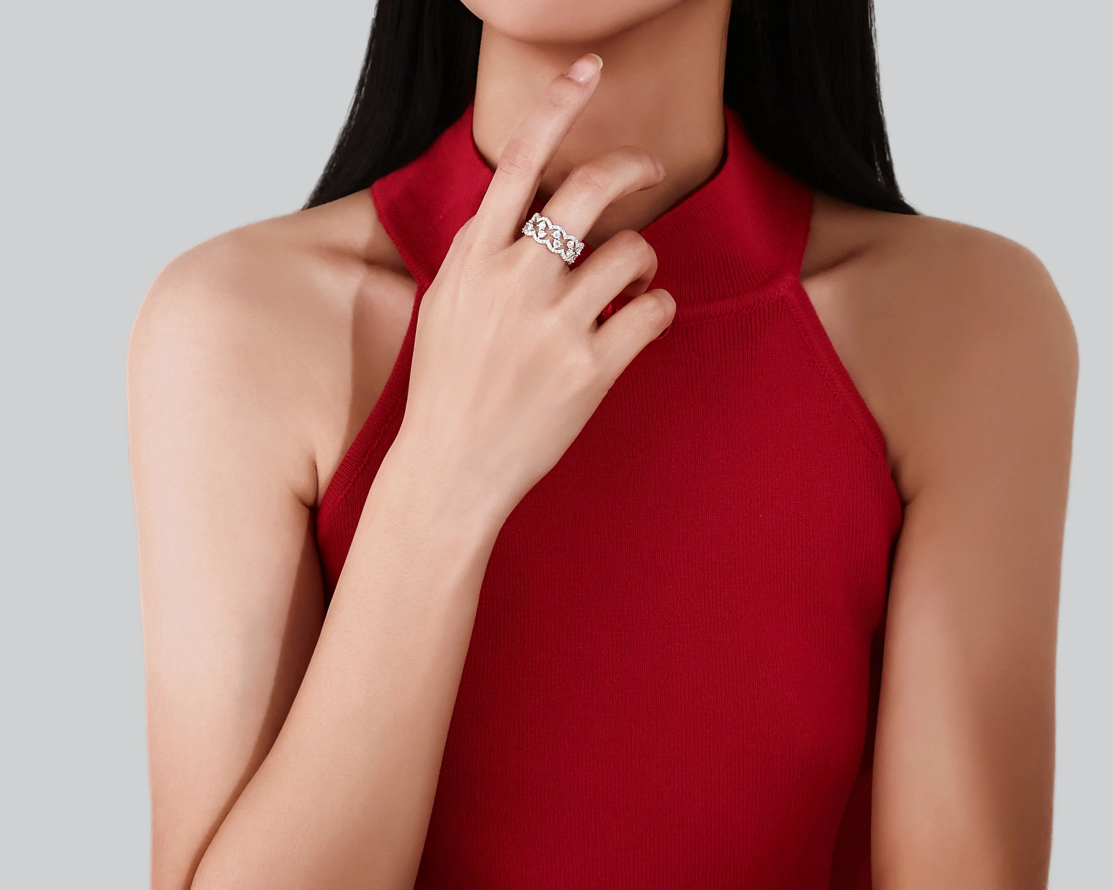Absolutely love this band! It’s so elegant and classy! I can pair it with many of my rings and make an oldie a whole new ring again. It’s so sparkly and the quality is amazing! It’s a must have!!