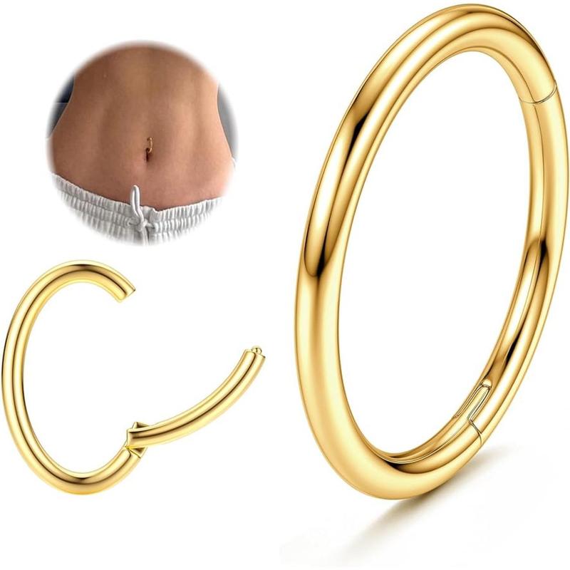 REVERSE DESIGN Reverse belly button rings combined with super practical hinged closure design, easily removable one-count clasp. Reverse clicker belly button ring is close to you skin, it prevents you clothes from rubbing against. Bringing you a more comfortable Oval hoop belly button rings wearing experience