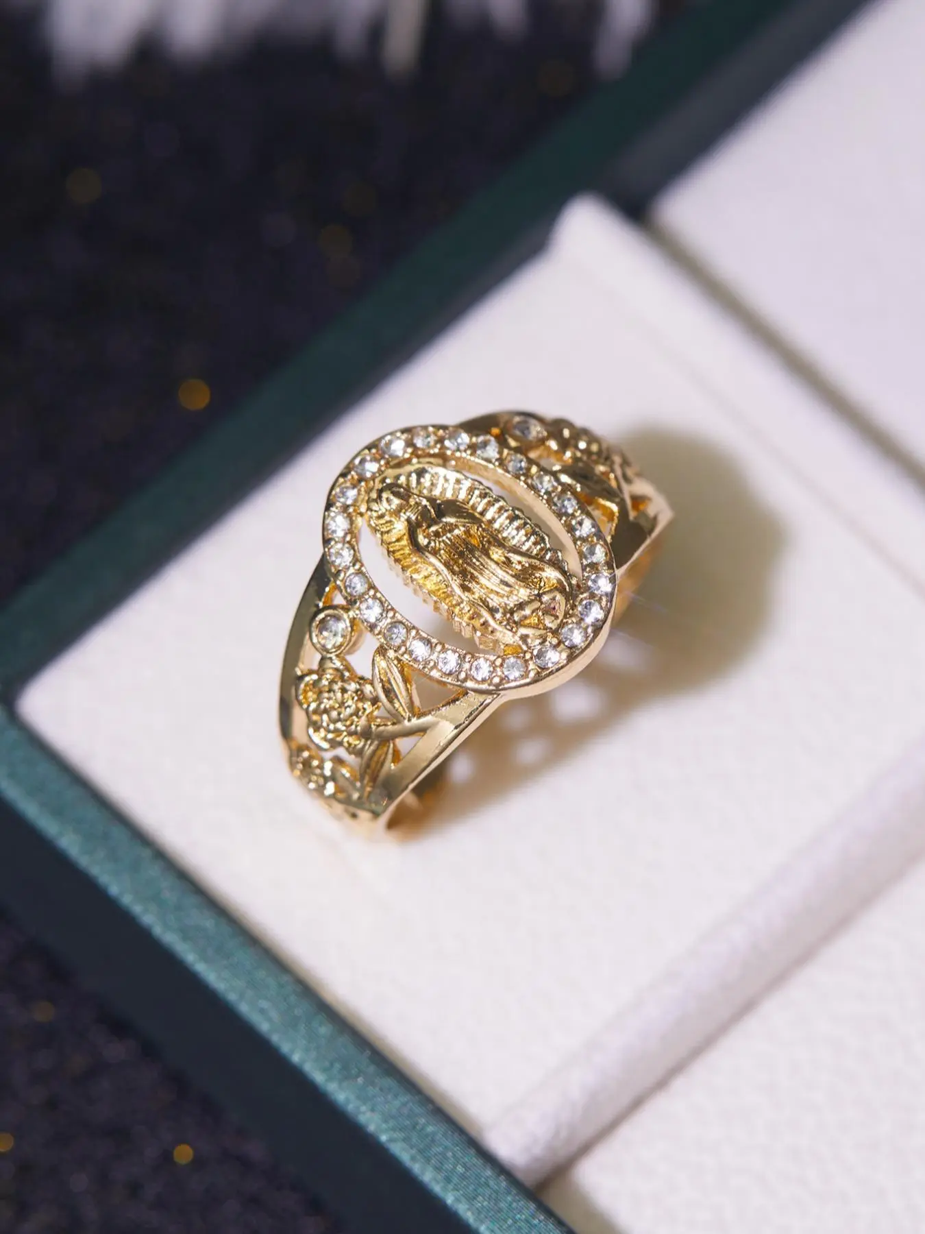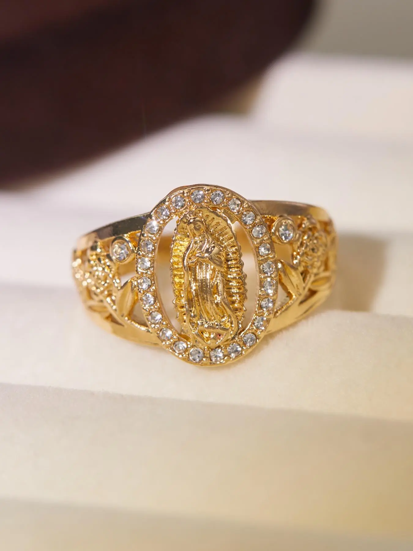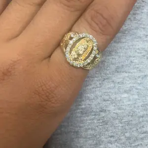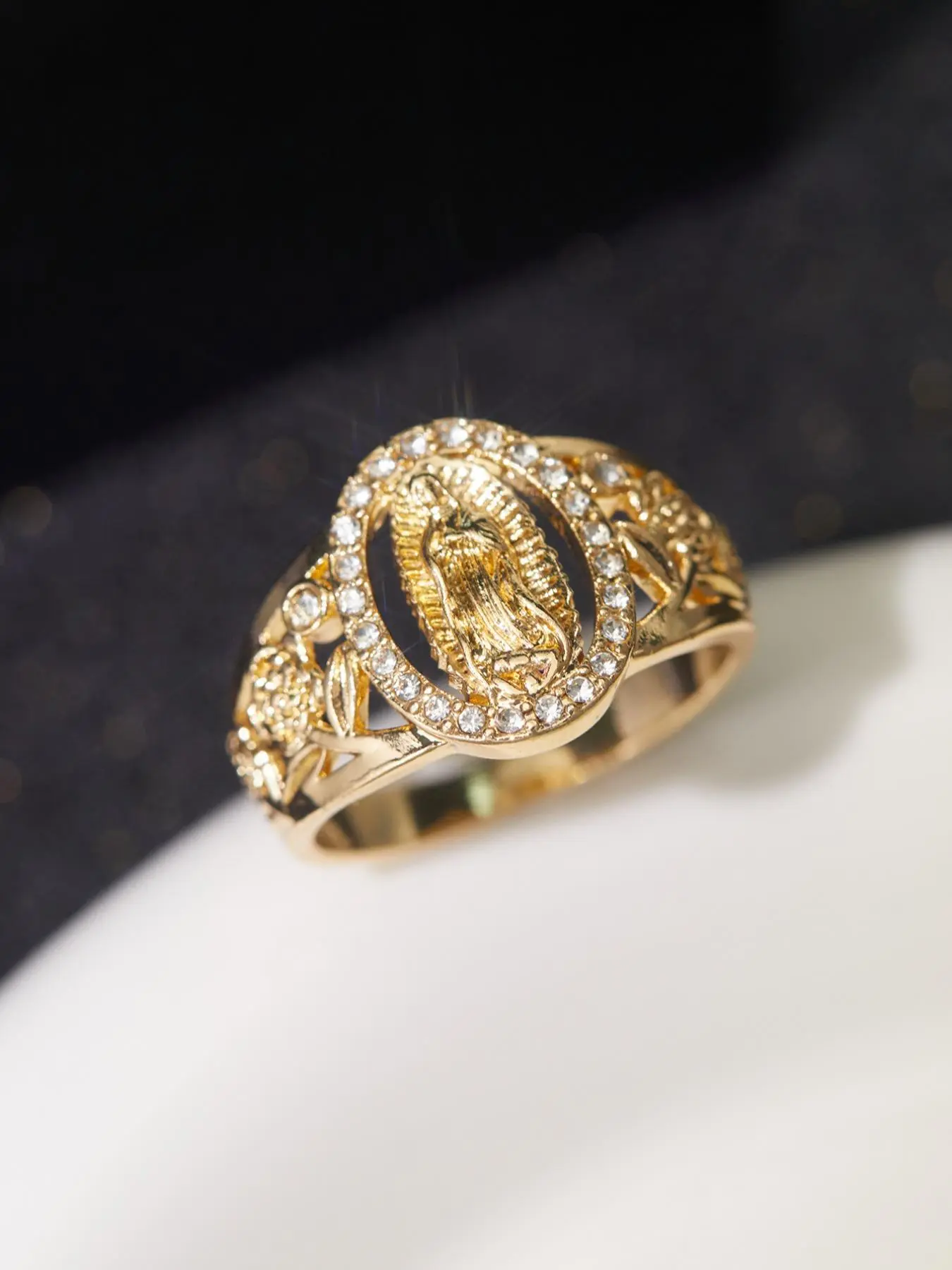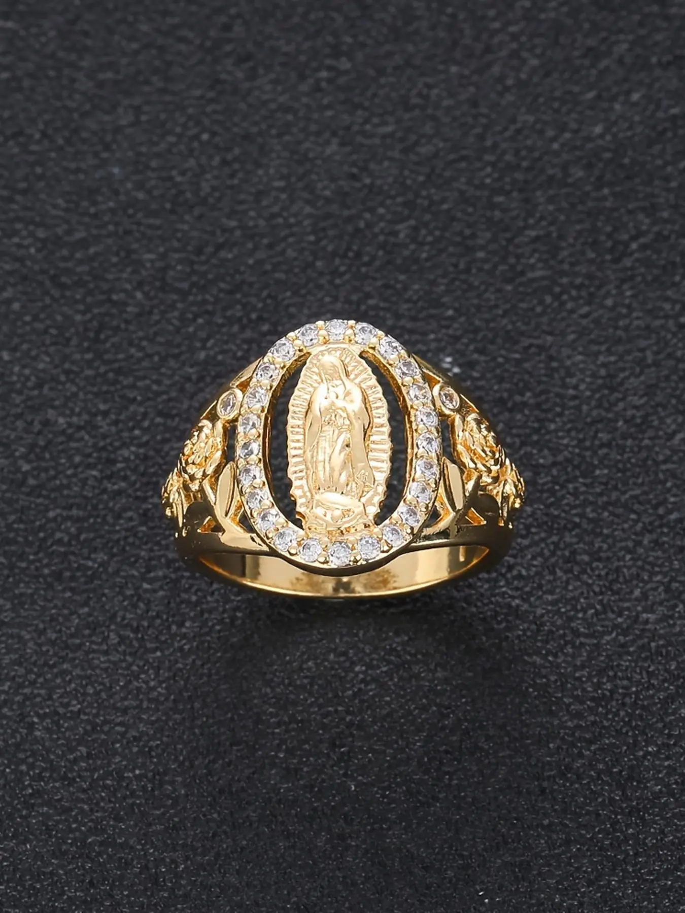 Unisex Punk Style Virgin Mary Design Ring, Rhinestone Decor Ring for Daily & Party Wear, Trendy All-match Vintage Jewelry for Birthday Gift, Statement Ring
