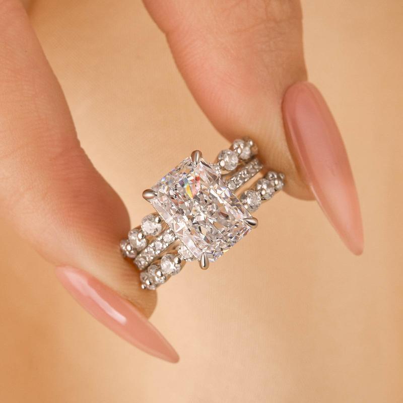 Introducing our Stunning Radiant Cut 3PC Ring Set, a breathtaking ensemble that exudes elegance and sophistication. Crafted with exquisite detail, this set features a radiant cut centerpiece embraced by two accompanying bands, creating a harmonious blend of timeless beauty and modern flair. Each piece is meticulously designed to capture the light from every angle, illuminating the wearer's grace and style.