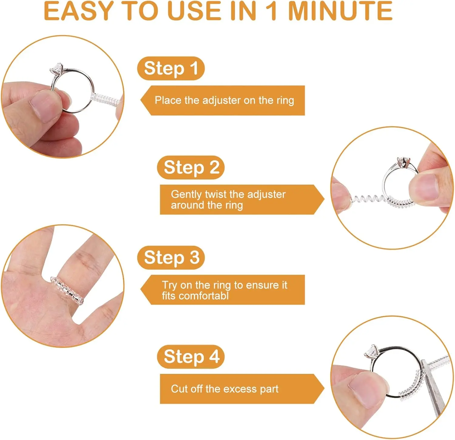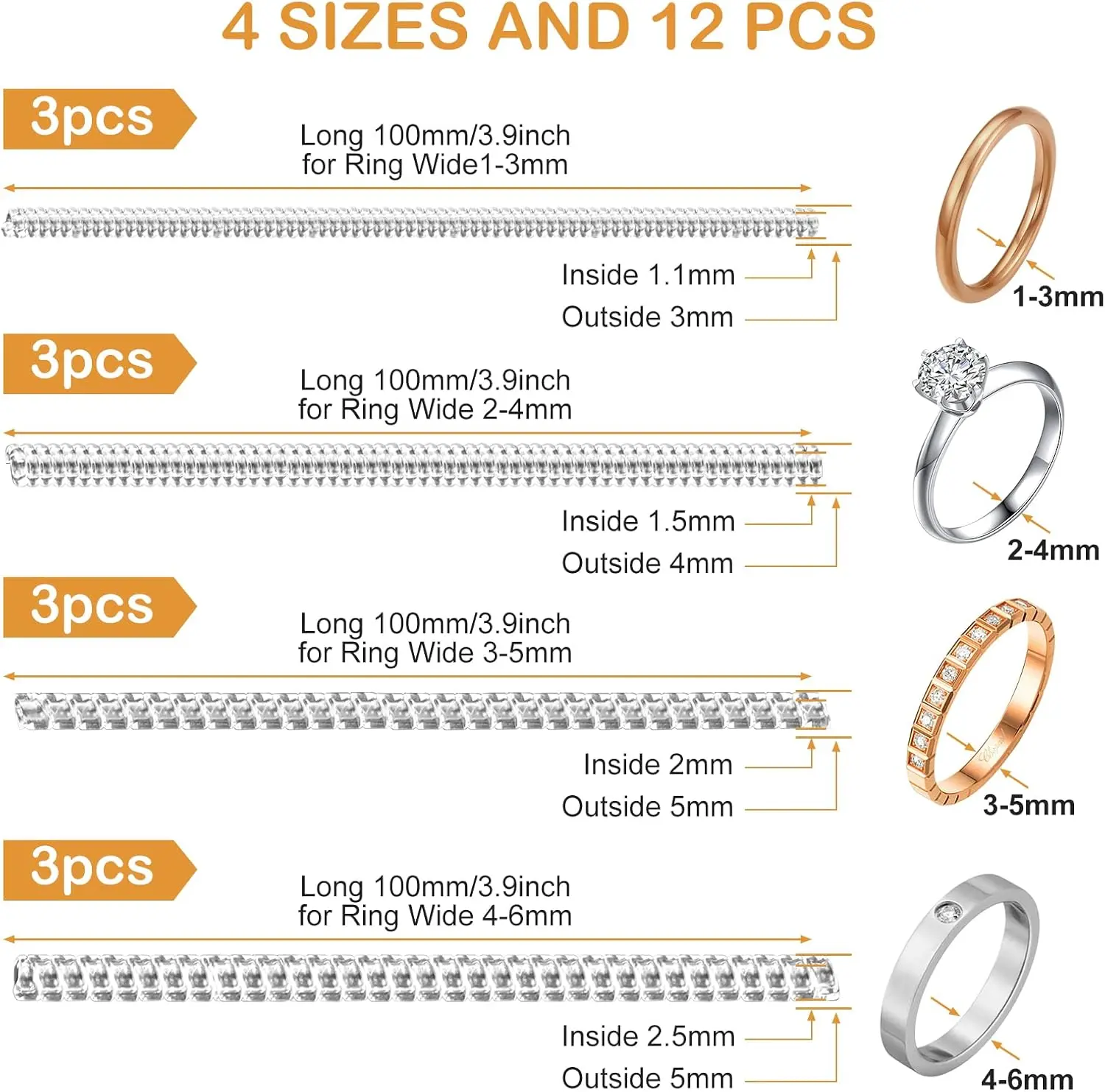 ·Suitable for most rings: Contains 12 quantity, 4 sizes of ring size adjusters, 2mm round, 5mm round, 3mm flat, 5mm flat, each length is 100mm, suitable for women's rings, Men's rings, engagement rings, wedding rings, and most rings in most sizes