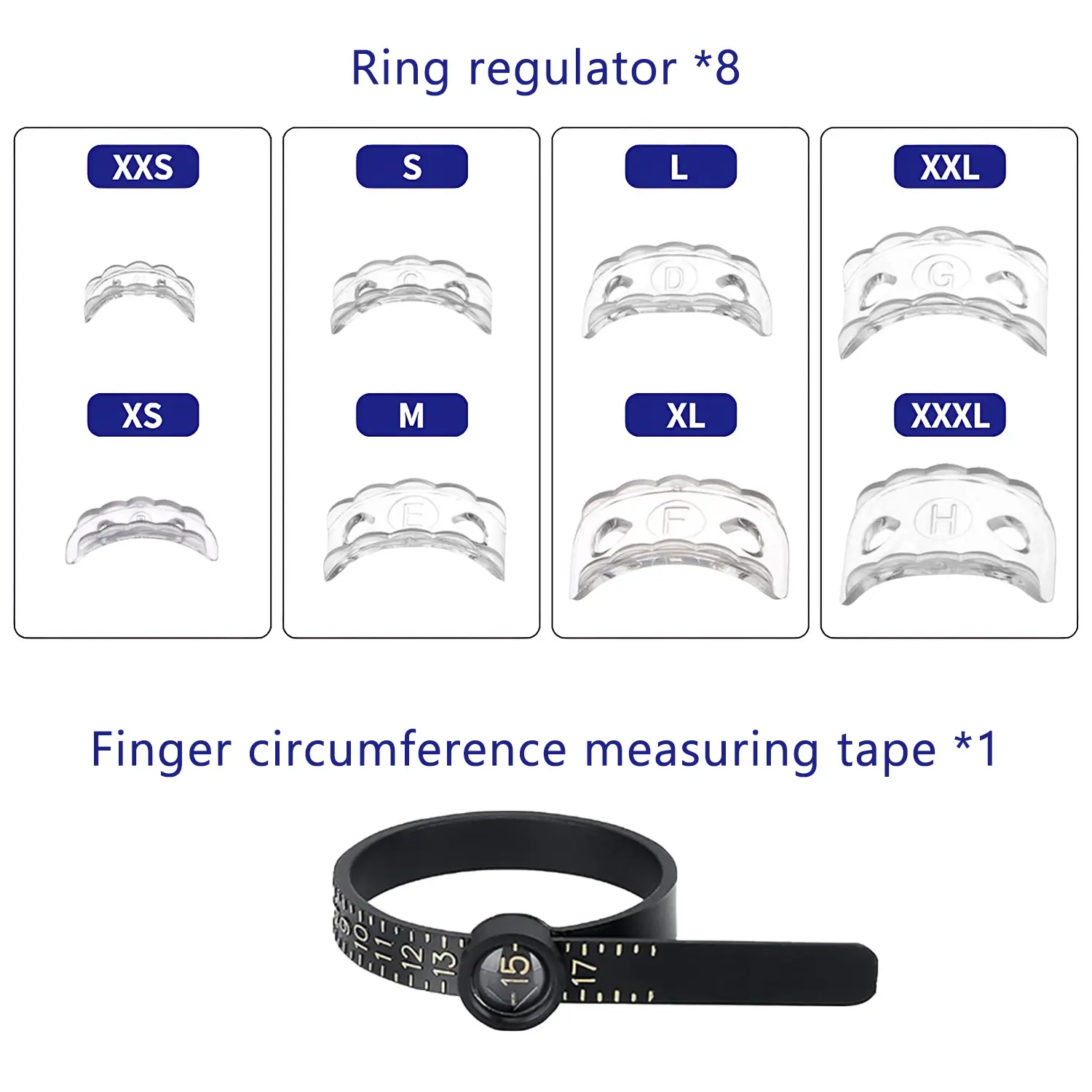 Ring Sizer Adjuster Set - Package contains 8 different sizes of ring adjuster and a measuring Tool. Ring resizer fits loose rings easily. Ring spacer make rings smaller and prevent them from spinning or falling off.