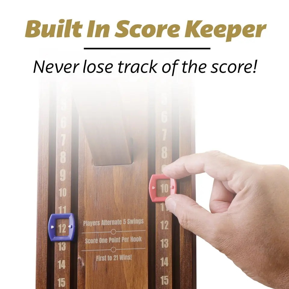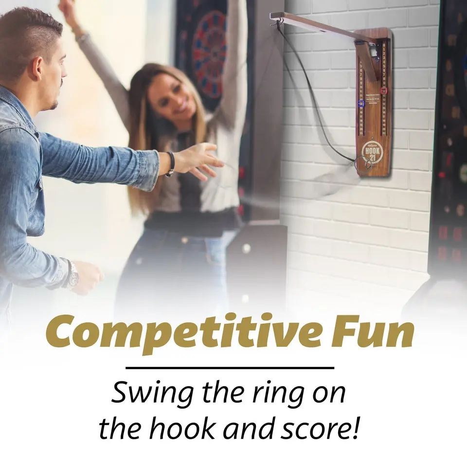 ·CLASSIC RING SWING GAME - GoSports Hook 21 is a modern take on the classic ring swing game. Players swing the ring on the hook to score, and the first player to 21 wins!