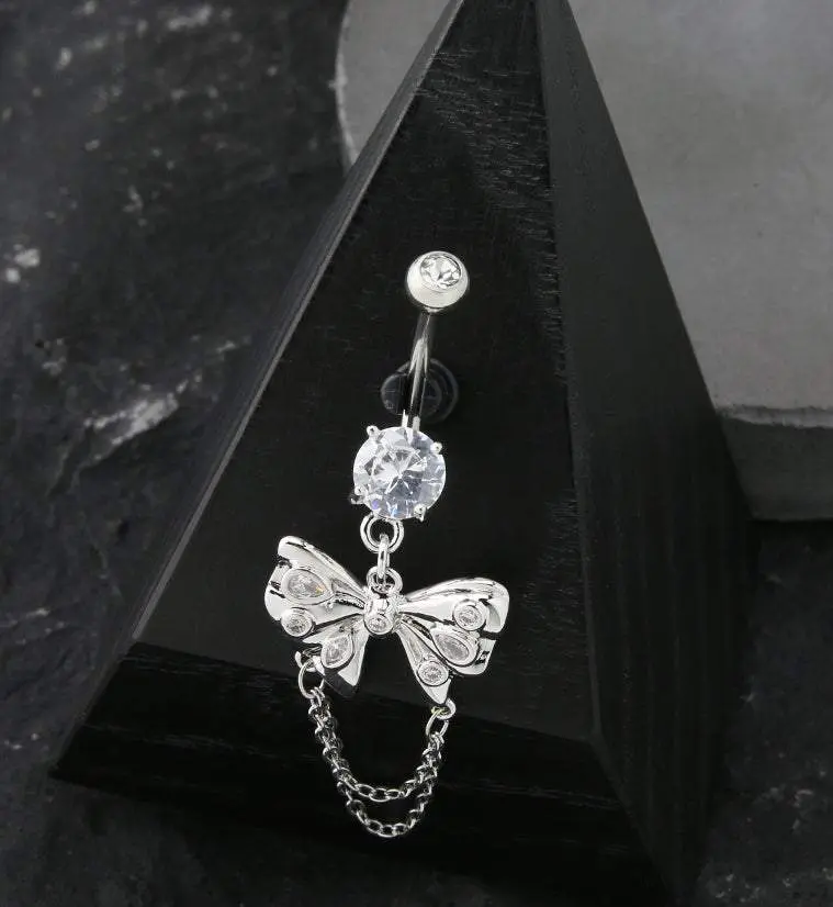 5. Butterfly Bow Double Dangle Chain Stainless Steel Belly Button Ring
