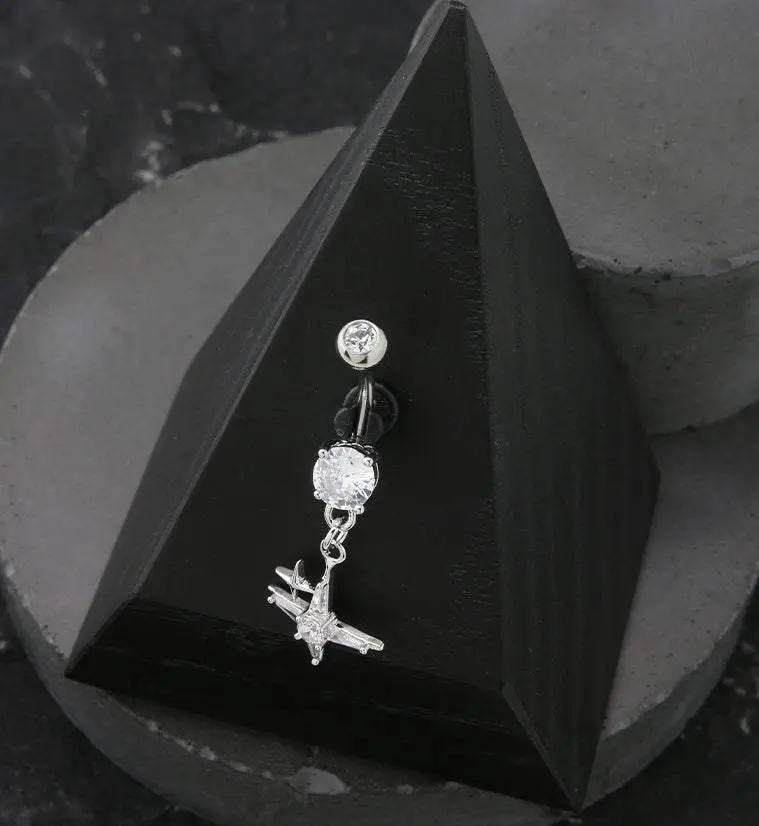 Compass Star CZ Dangle Stainless Steel Belly Button Ring