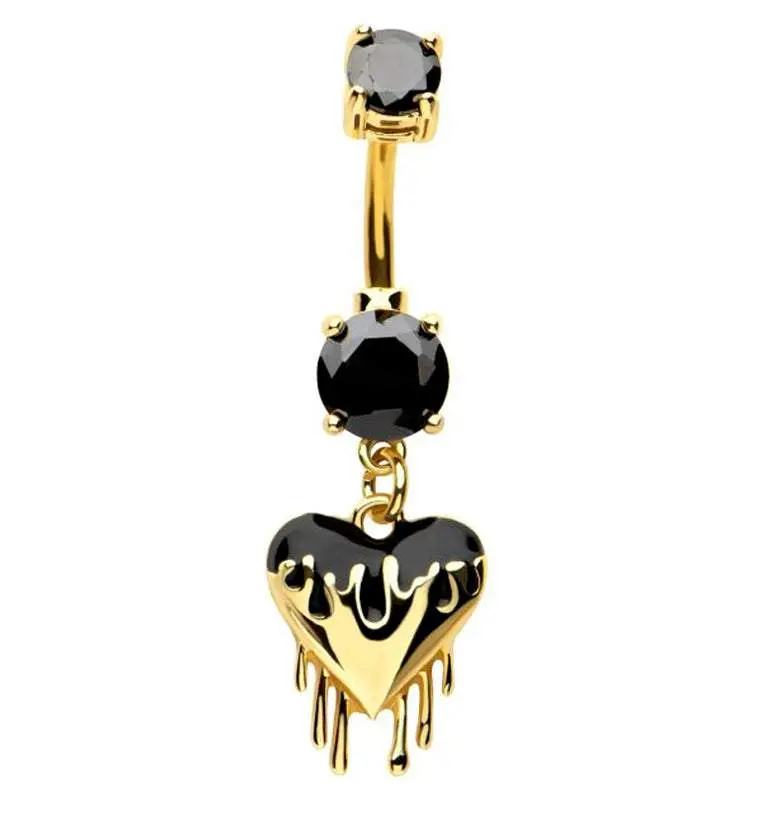5. Gold PVD Dripping Heart Black CZ Stainless Steel Belly Button Ring