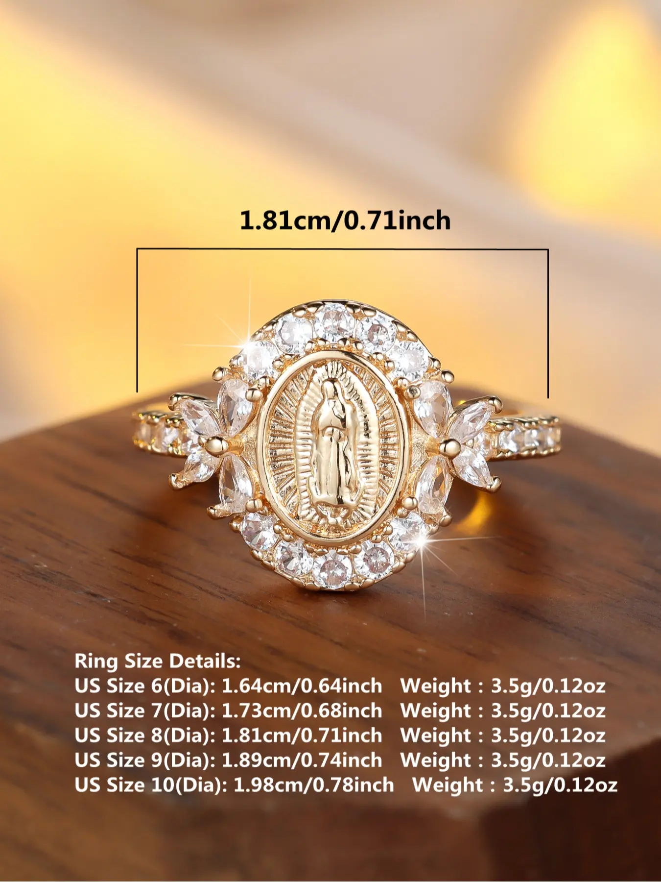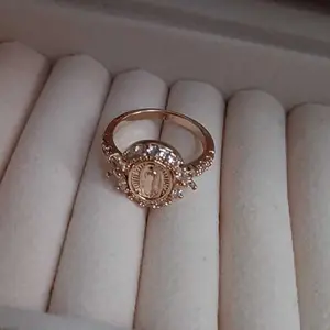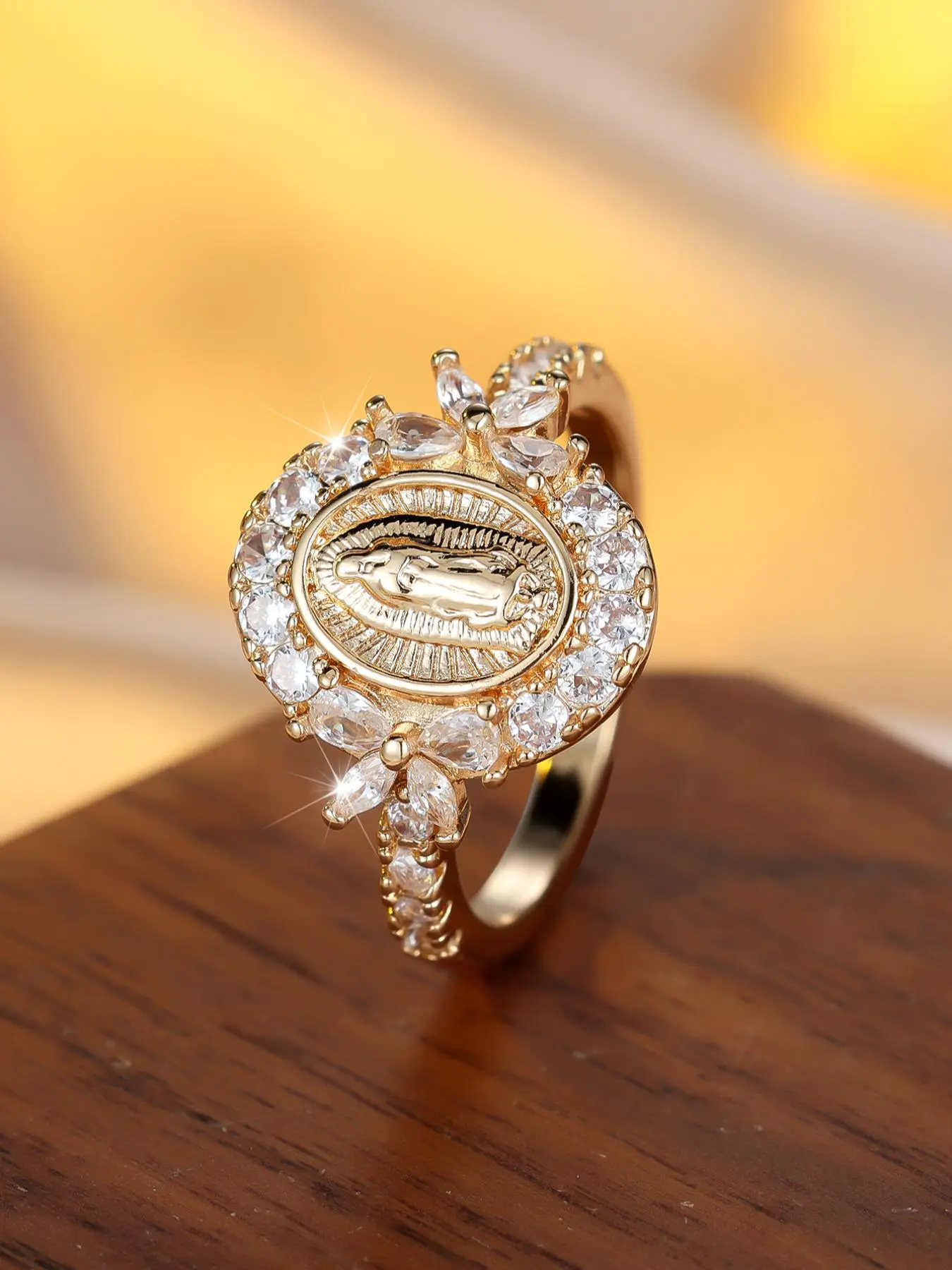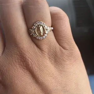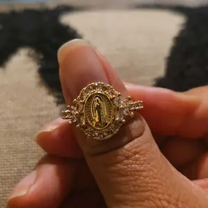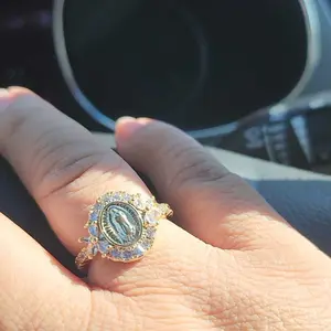 ăReligious Symbolismă: Featuring an exquisite depiction of the Virgin Mary, this ring adds spiritual significance to your jewelry collection.