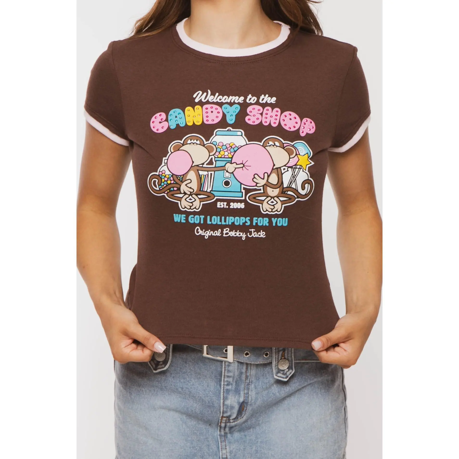 #blusas de de bobby jack##Dealsforyoudays#este mono anda bien viral#Candy Shop - Bobby Jack Rhinestone Ringer Top -Brown#blusa con estampado#viral#tiktko