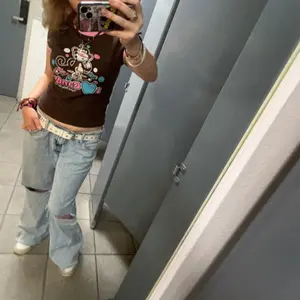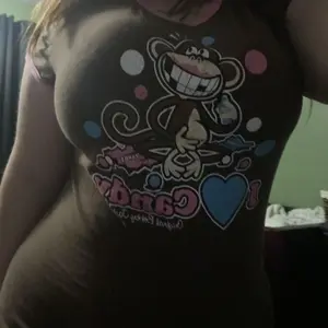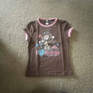 AAA THIS IS SO FREAKIN UNQE AND COOL!! Comfortable, aesthetically pleasing, looks vintage, baby tee, it looks a little odd on the shoulders because the shirt looks like it’s trying to get pulled forward but otherwise it’s great!!🙈🍭🍪