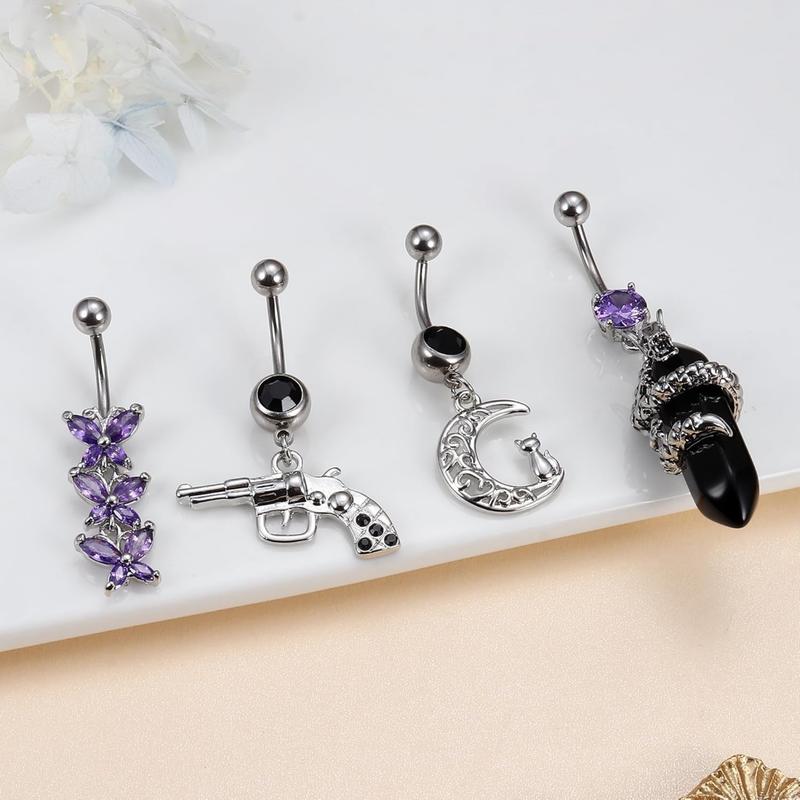 ·UNIQUE DESIGN --We don't need cookie cutters, we need more individuality. This dangle belly button rings set contains various designs, devil eyes and dragons mean protection, flowers mean gentleness, guns mean bravery, hearts and moon mean love and peace,no matter what personality you have, you can be in it find what you want