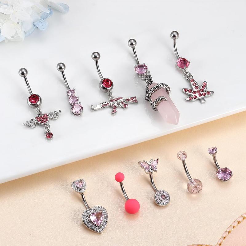 ·COLORFUL BELLY BUTTON RINGS --1 order you will get 10 pieces belly button rings, including 5 short barball heart butterfly belly rings,5 unique shape dangle belly button rings. There are 3 colors, Pink tone, Blue tone and Purple tone,unique design and diverse styles