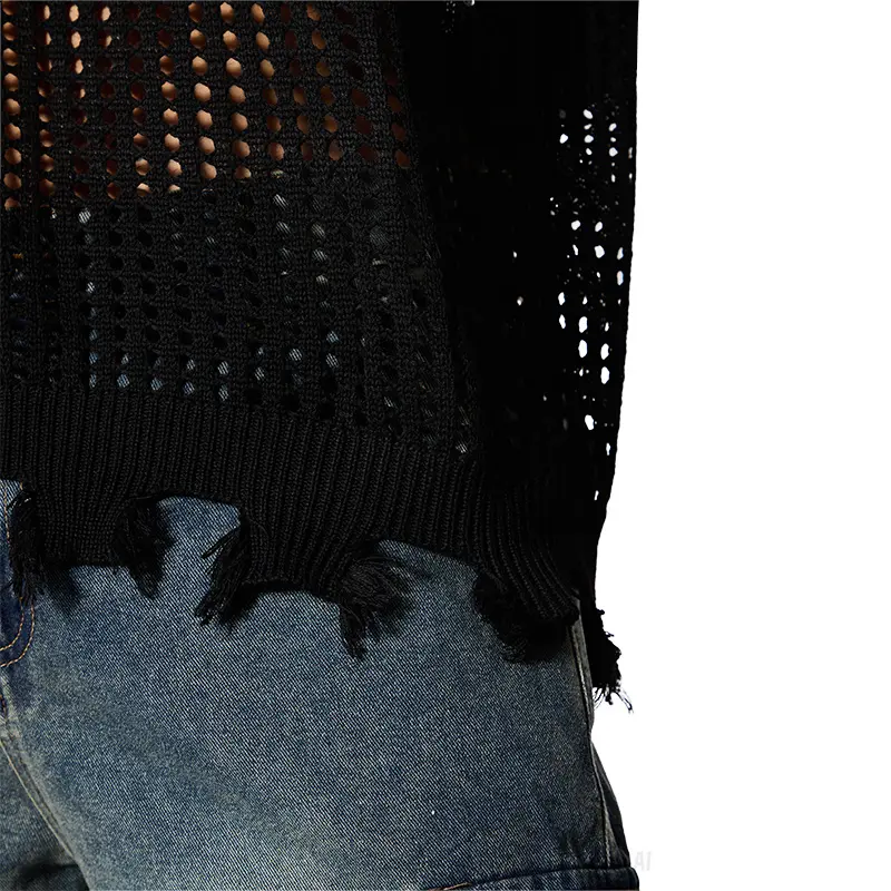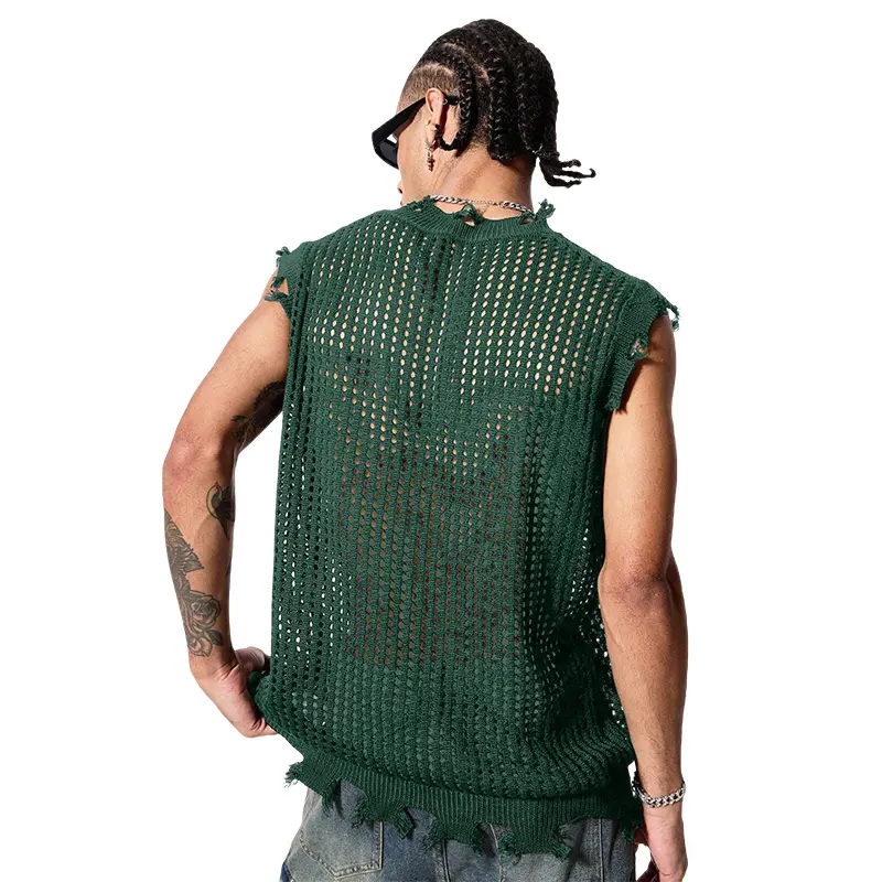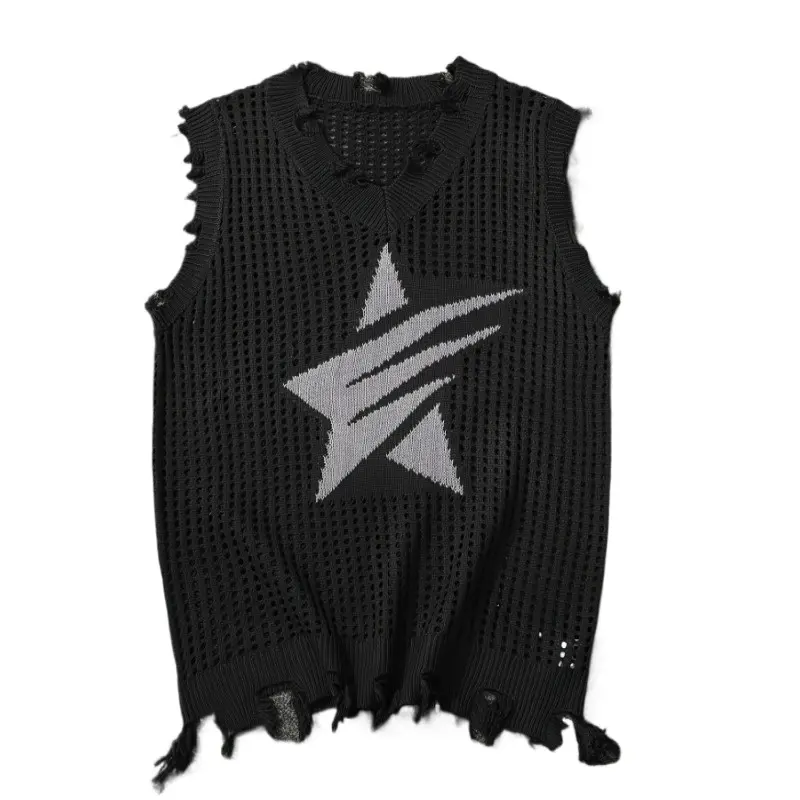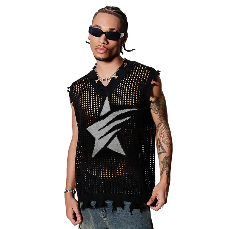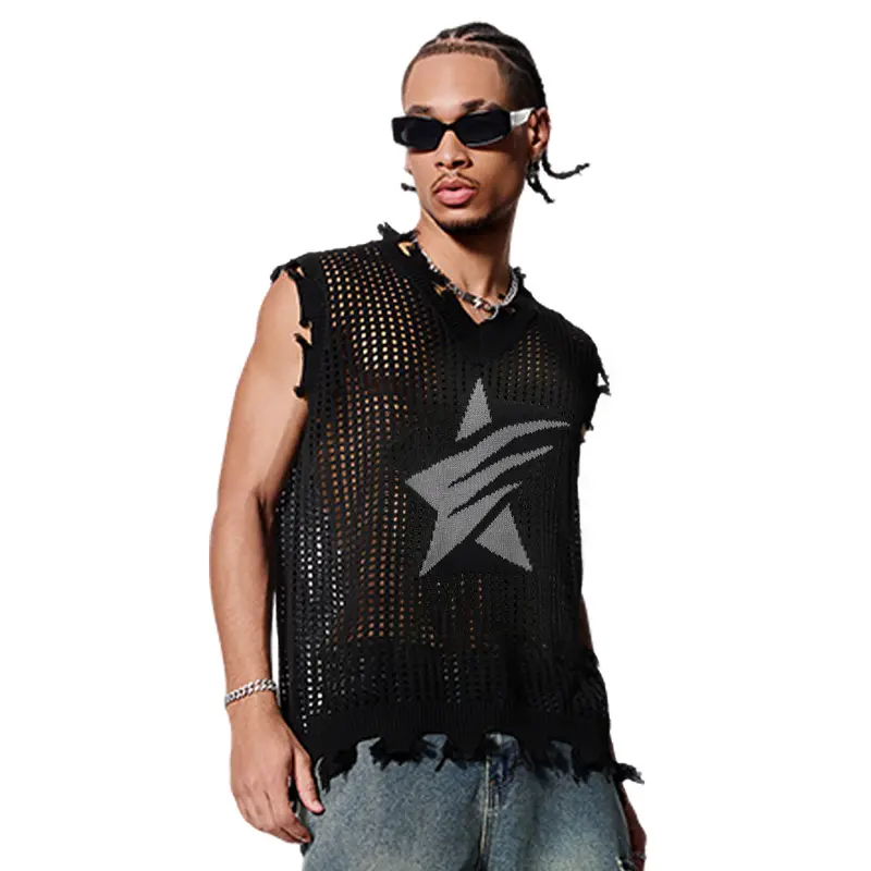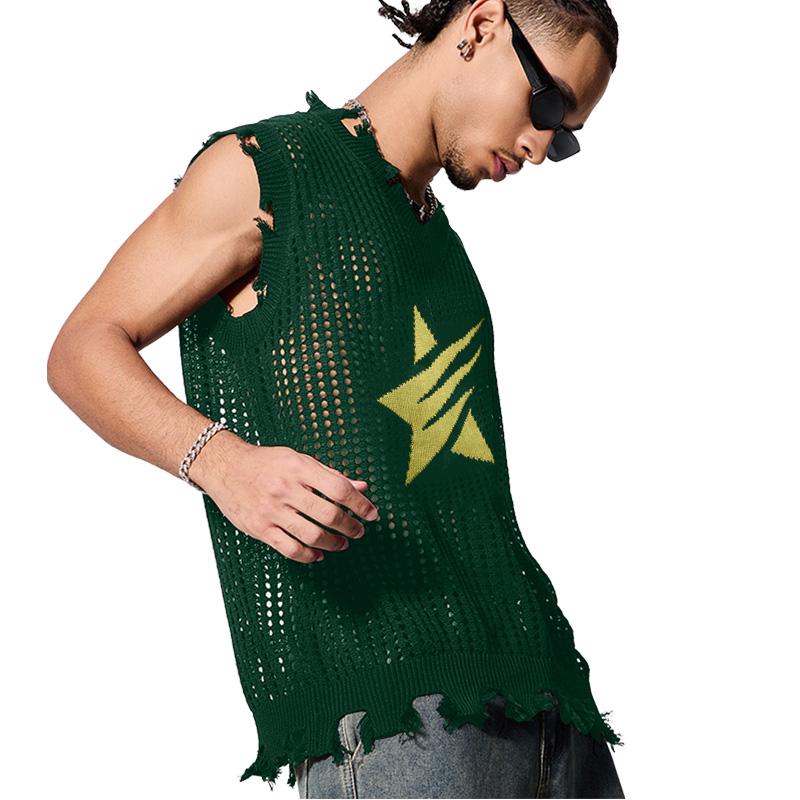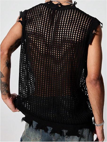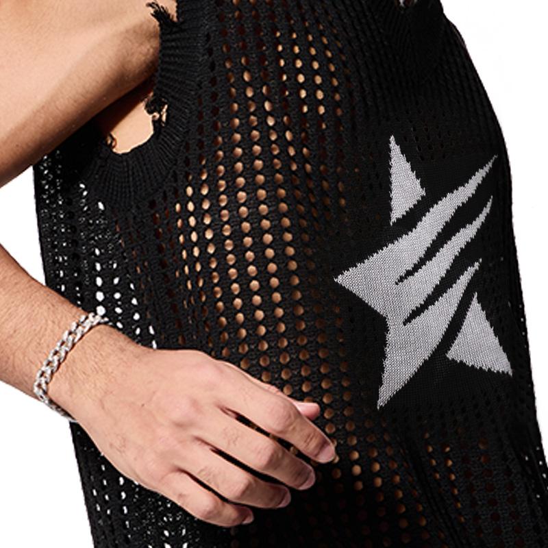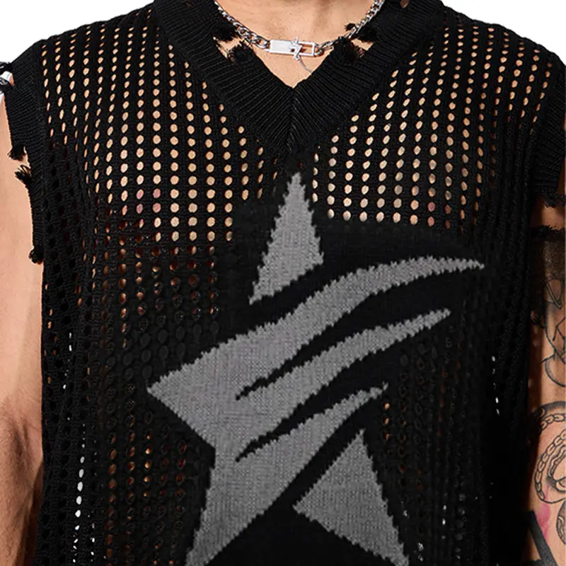 ·Features: men's hollow out sweater, sleeveless, ripped, distressed, star print, sheer, transparent, sweater tank, punk grunge knit sweater