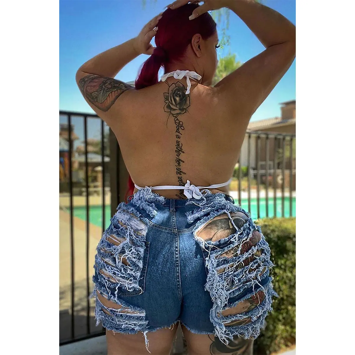 Ā·Features: we make a ripped design both in front and back . it make the shorts more sexy while don't need to worry about over exposed. front zipper with a button closure make it easily to dress up and down.