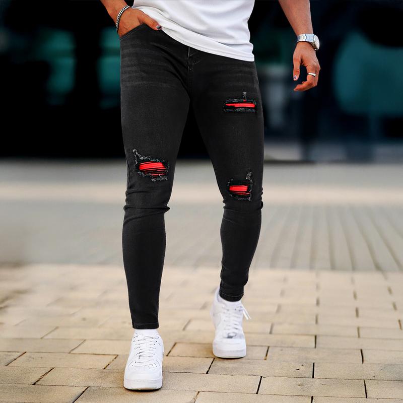 ·Ripped distressed jeans pants originating from senior fashion design, Fully meet mainstream trend.You will be more charming with our slim fit jeans in the workplace and leisure place.leather fabric patchwork is designed to be used in worn areas to make you stand out from the crowd.