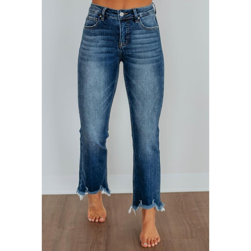 Absolutely love these jeans! I’m 5’2and they hit right at the ankle so they aren’t cropped for me. Love the dark wash and the kick out flare at the bottom! It’s a mid rise fit and super stretchy. I’m 135 pounds and got size 5/27. Couldn’t recommend them more.