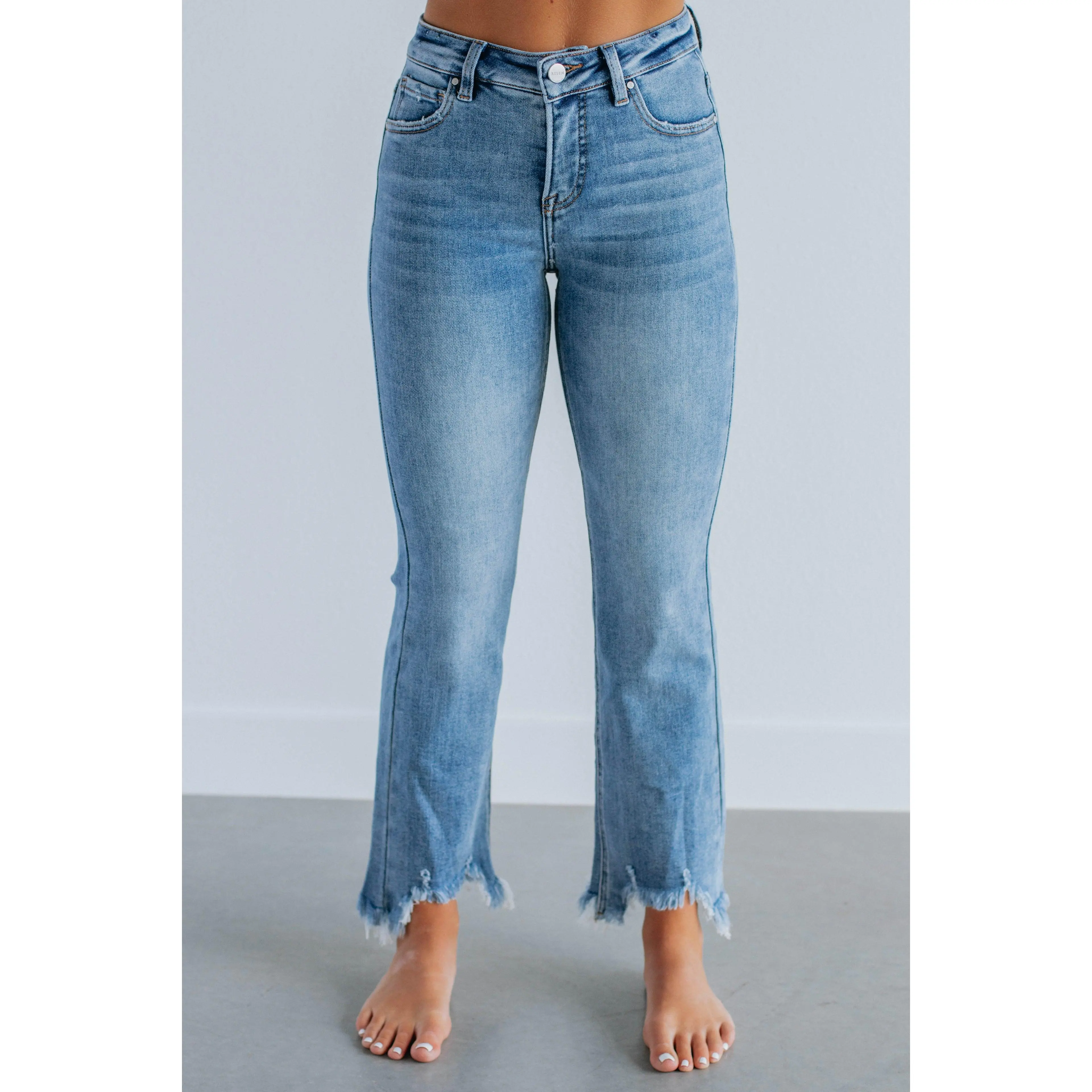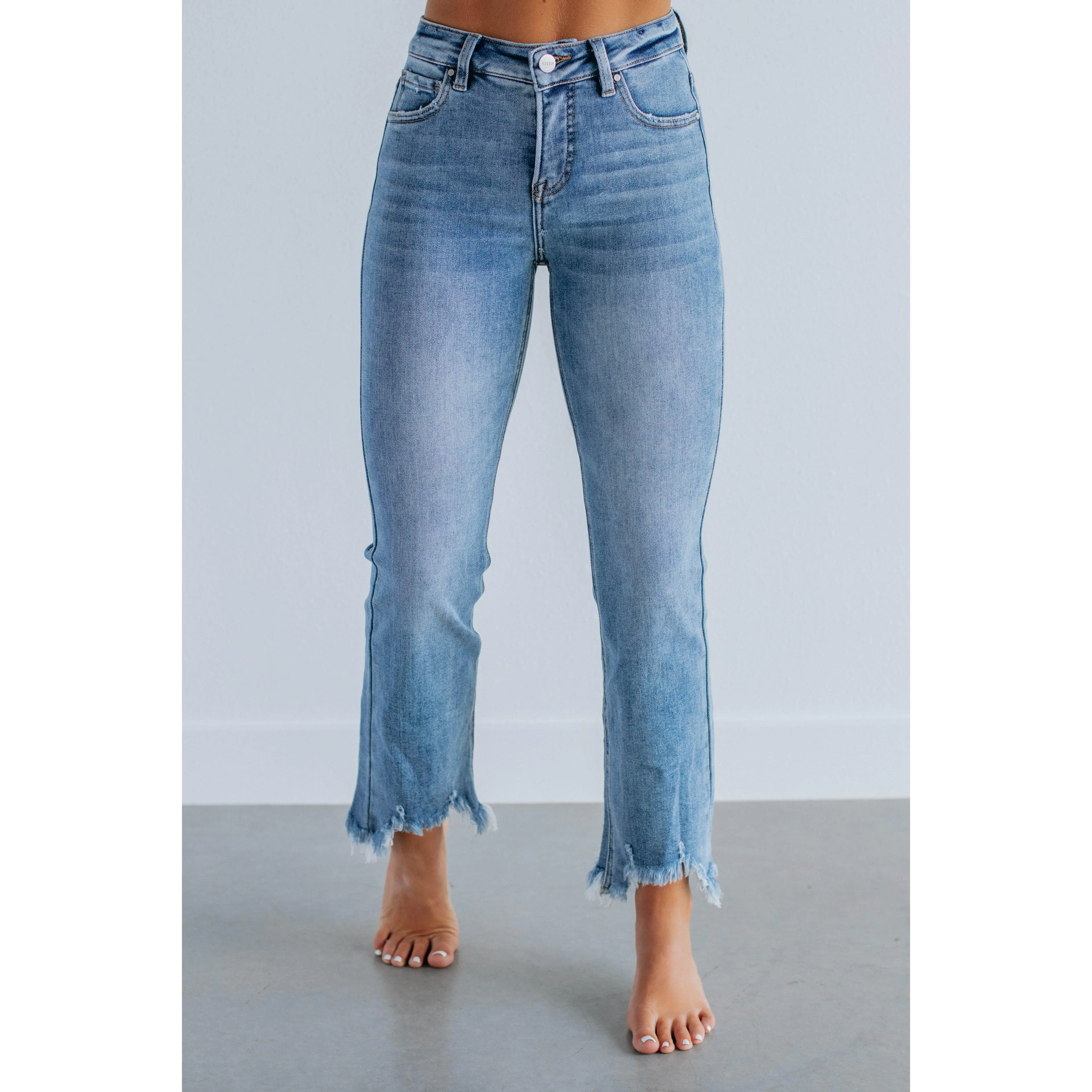 Risen are great jeans. Love the length of these and the rough edges on the legs. Comfortable and very cute.