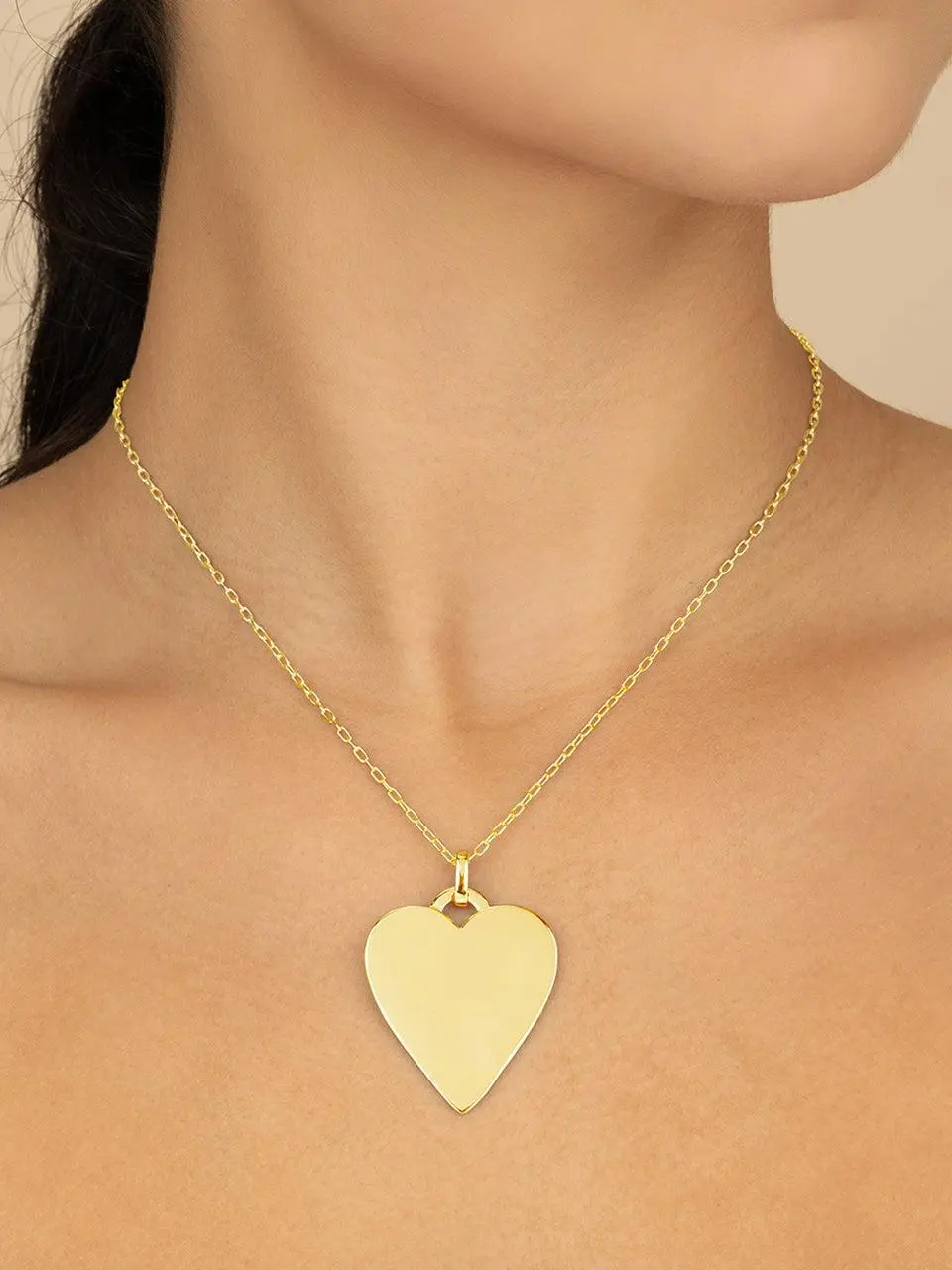 Wear your heart—not on your sleeve, but right where it matters. A bold, minimalist pendant that’s equal parts personal and powerful. Layer it up or let it take center stage—this one plays well with sentiment.