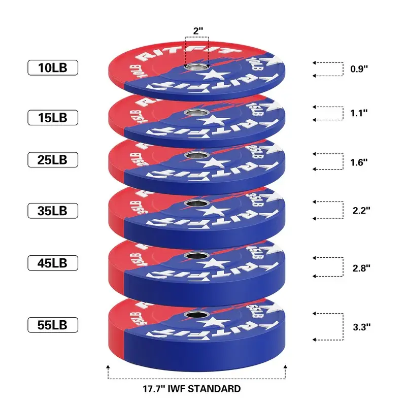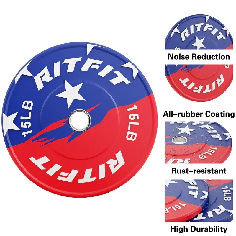 5. RitFit Patriotic Color Bumper Plates 2 Inch Olympic Rubber Weight Plates Muscle Training Equipment Leg Training Equipment Muscle Exercise Equipment