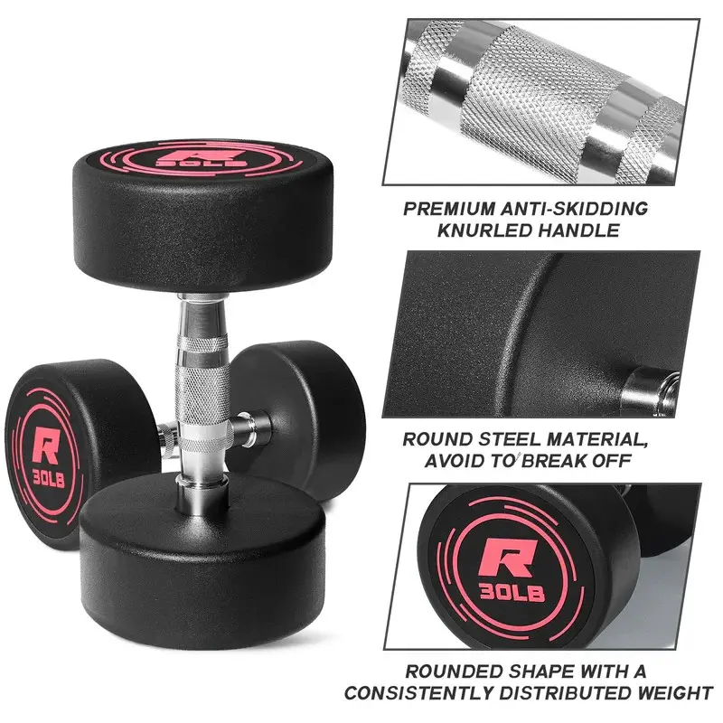 The Pink PVC-coated round steel dumbbells are designed for durability, with minimal odor and exceptional wear resistance. They offer a more balanced weight distribution compared to hex dumbbells, enhancing performance during upper body exercises.