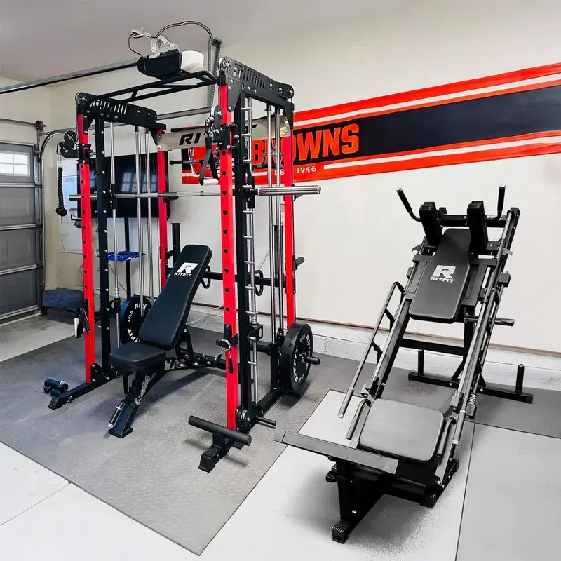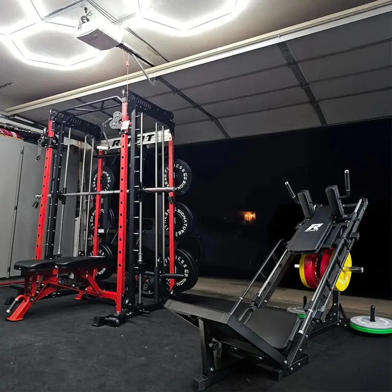 The M1 Smith Machine features 12 large adjustable holes on the uprights, allowing for easy customization of J-hooks, safety bars, and dip bars. This innovative design provides flexibility and ensures safety and stability during various strength training routines and home workouts. Perfect for both beginners and experienced lifters, the M1 Smith Machine helps you tailor your fitness experience to achieve your goals more effectively.