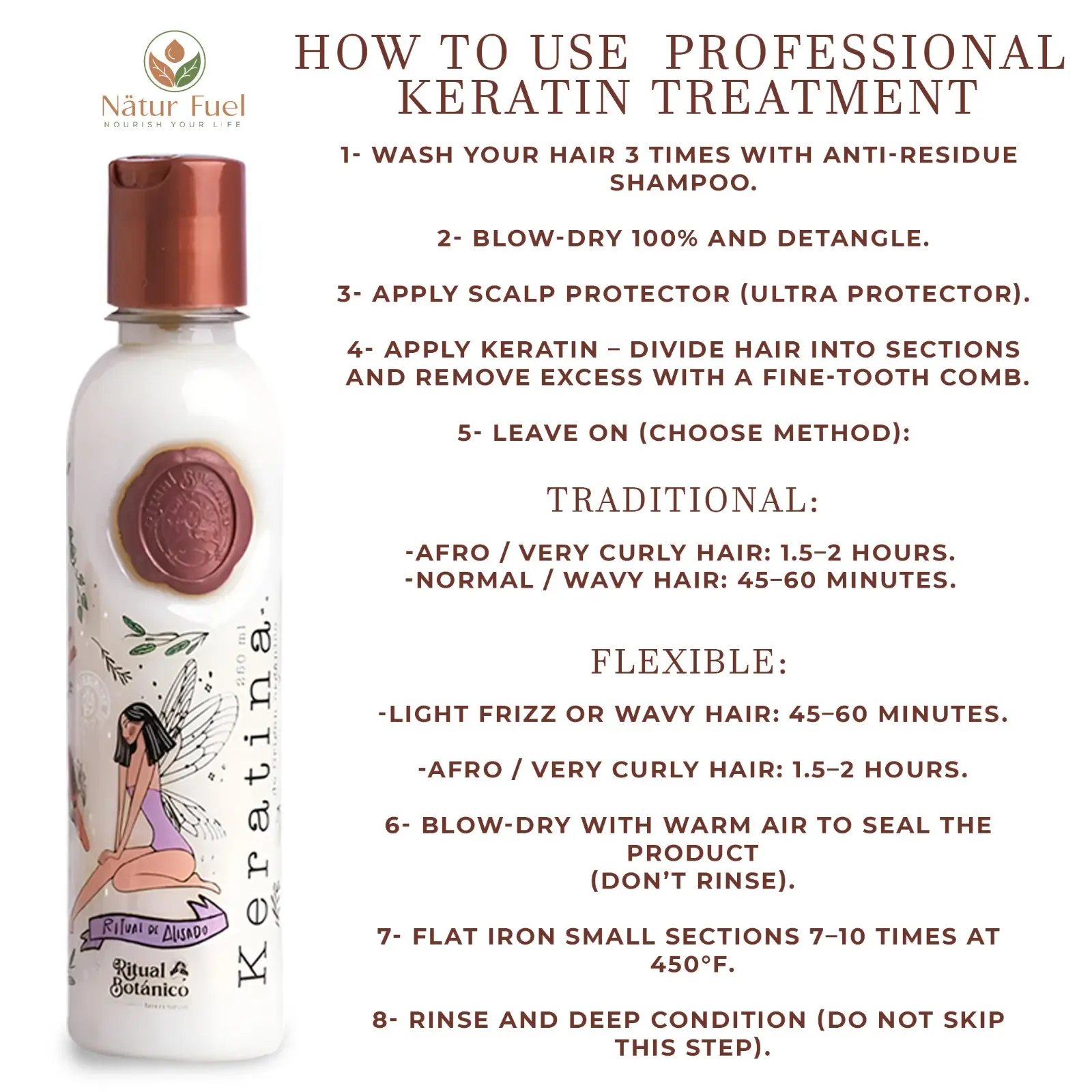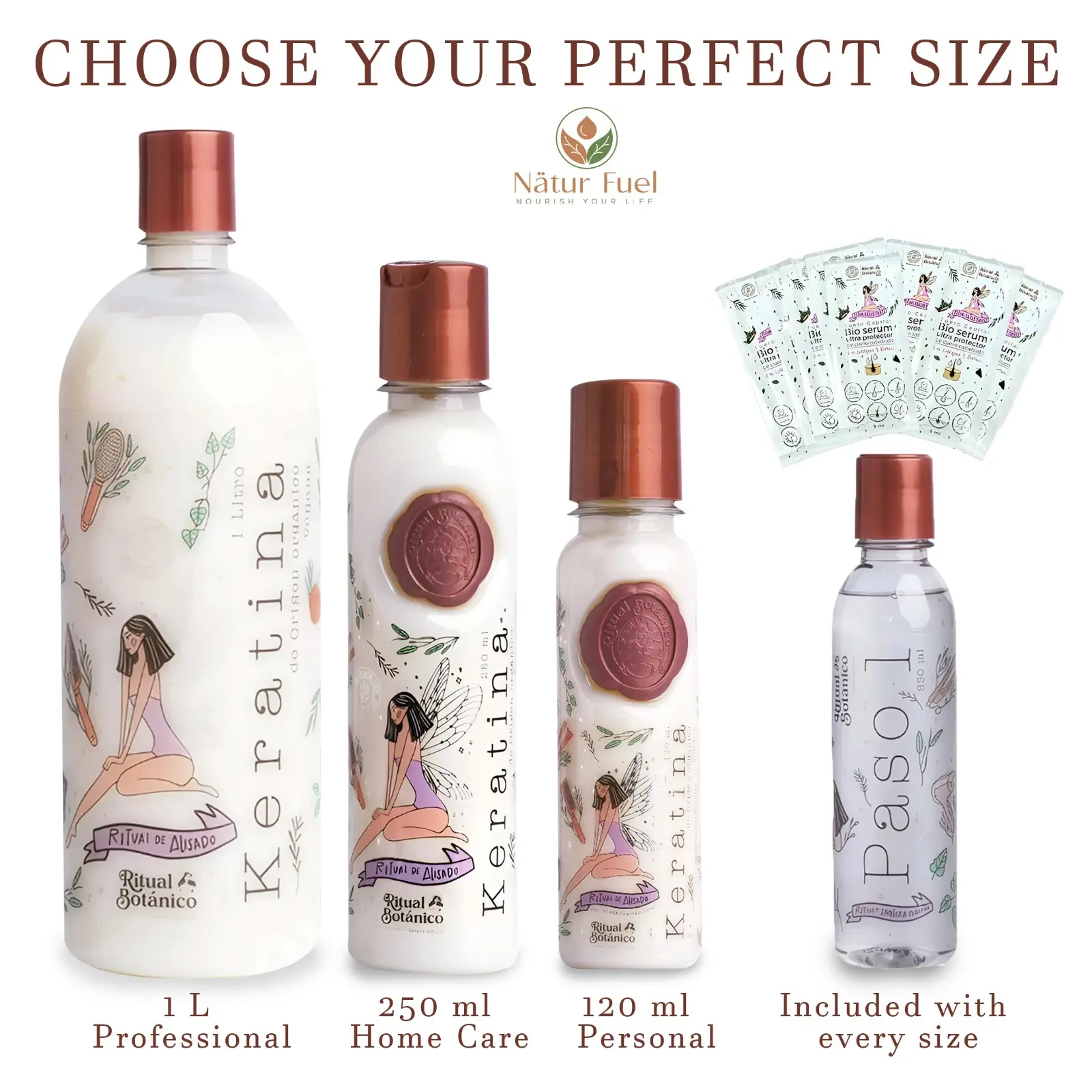 Transform your hair with our Keratina Ritual Botánico - Organic Keratin Treatment (250 ml) – a professional-grade, formaldehyde-free hair smoothing system designed to eliminate frizz, add intense shine, and restore softness from the very first use.