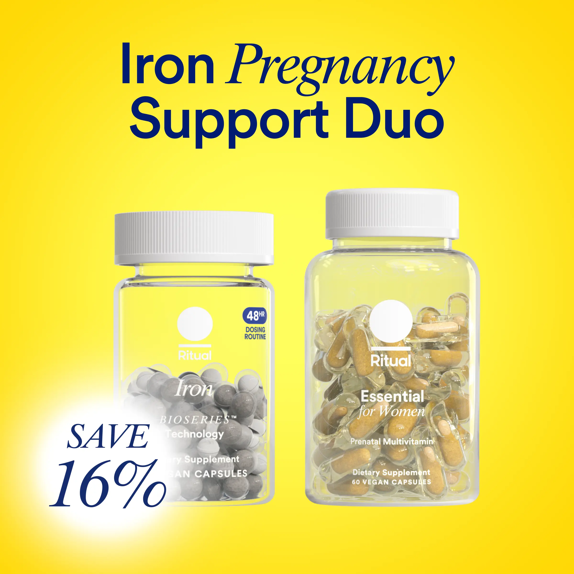 · The Iron BioSeriesTM Pregnancy Support Duo features a monthly supply of Ritual’s new pregnancy-safe‡‡, Iron BioSeries and Ritual’s #1 bestselling Essential Prenatal Multivitamins‡, with 12 traceable nutrients for before and during pregnancy.* (‡‡Consult your health care practitioner before using this product if you are pregnant or nursing, using medications or have a medical condition.‡Based on net sales from industry data including Nielsen IQ and Stackline as of Q2 2025.)