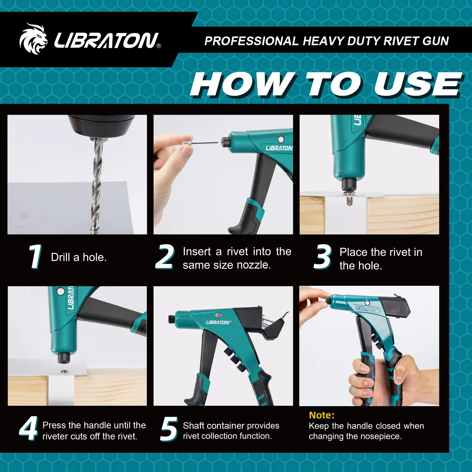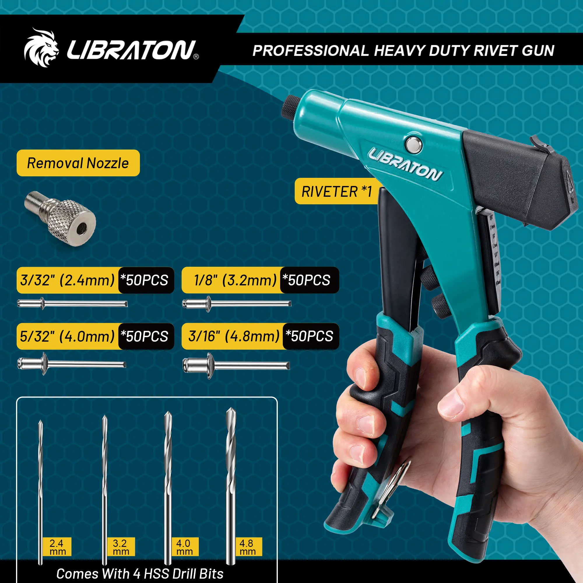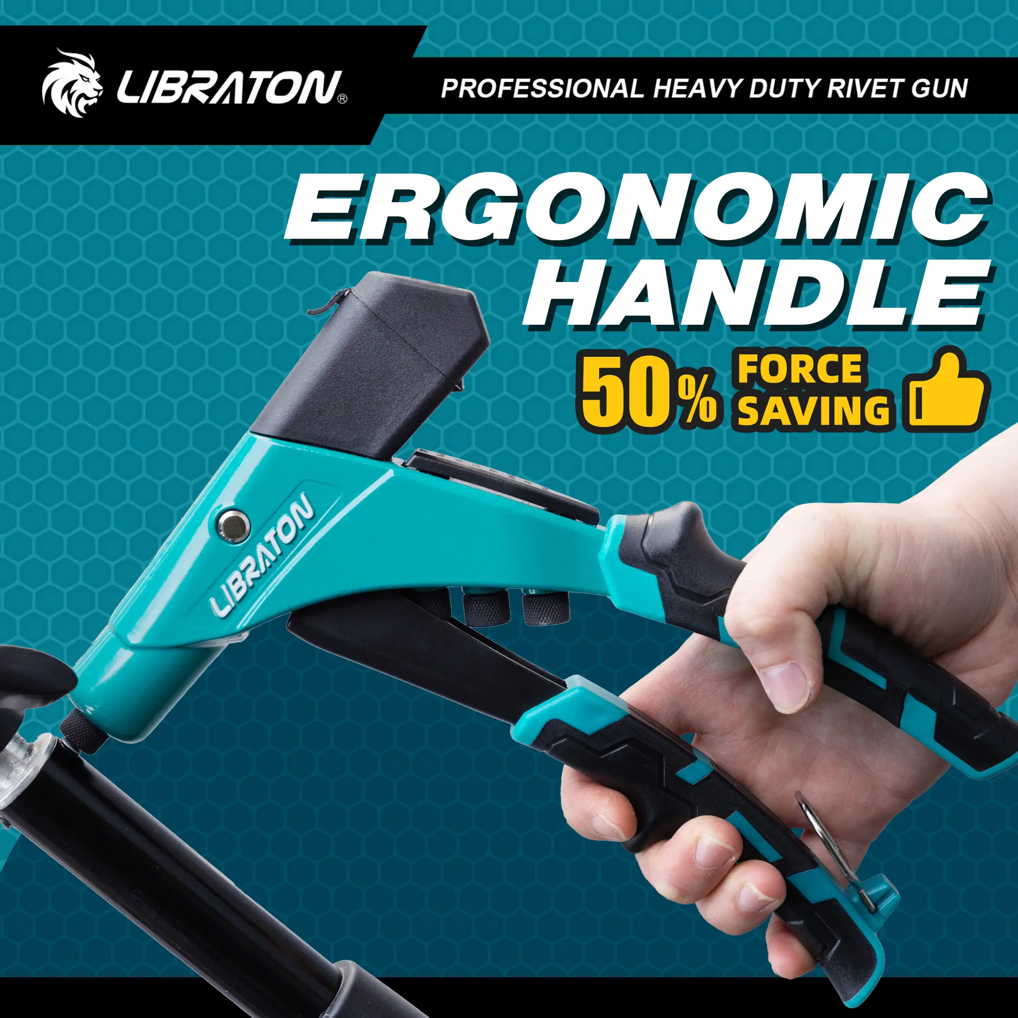 ·WORKING EFFICIENCY: Libraton rivet gun has an ergonomic one-handed handle that provides a larger leverage ratio, saving 50% strength. The thickened TPR provides a more comfortable hold.