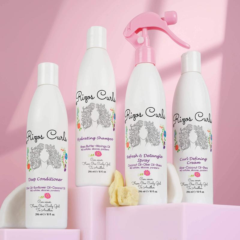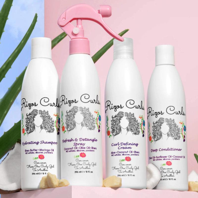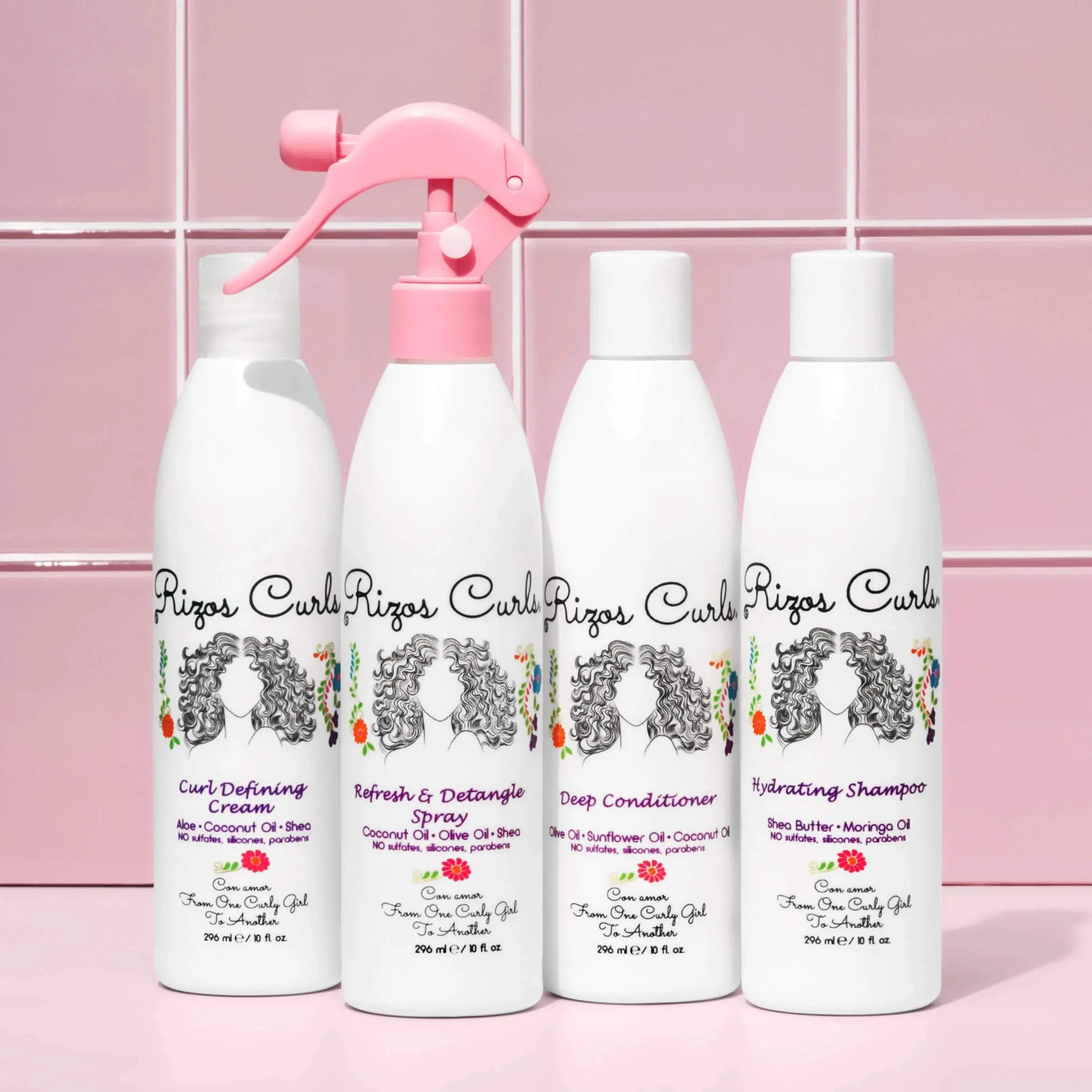 The Complete Rizos Curls 4-Step Bundle! This 4-step system will have your hair looking luscious and manageable with hydration, definition, and detangling – as easy as 1, 2, 3...4! Refresh and define your curls, coils, and waves and see the results for yourself! So wave goodbye to bad hair days and say hello to The Complete Rizos Curls 4-Step Bundle!