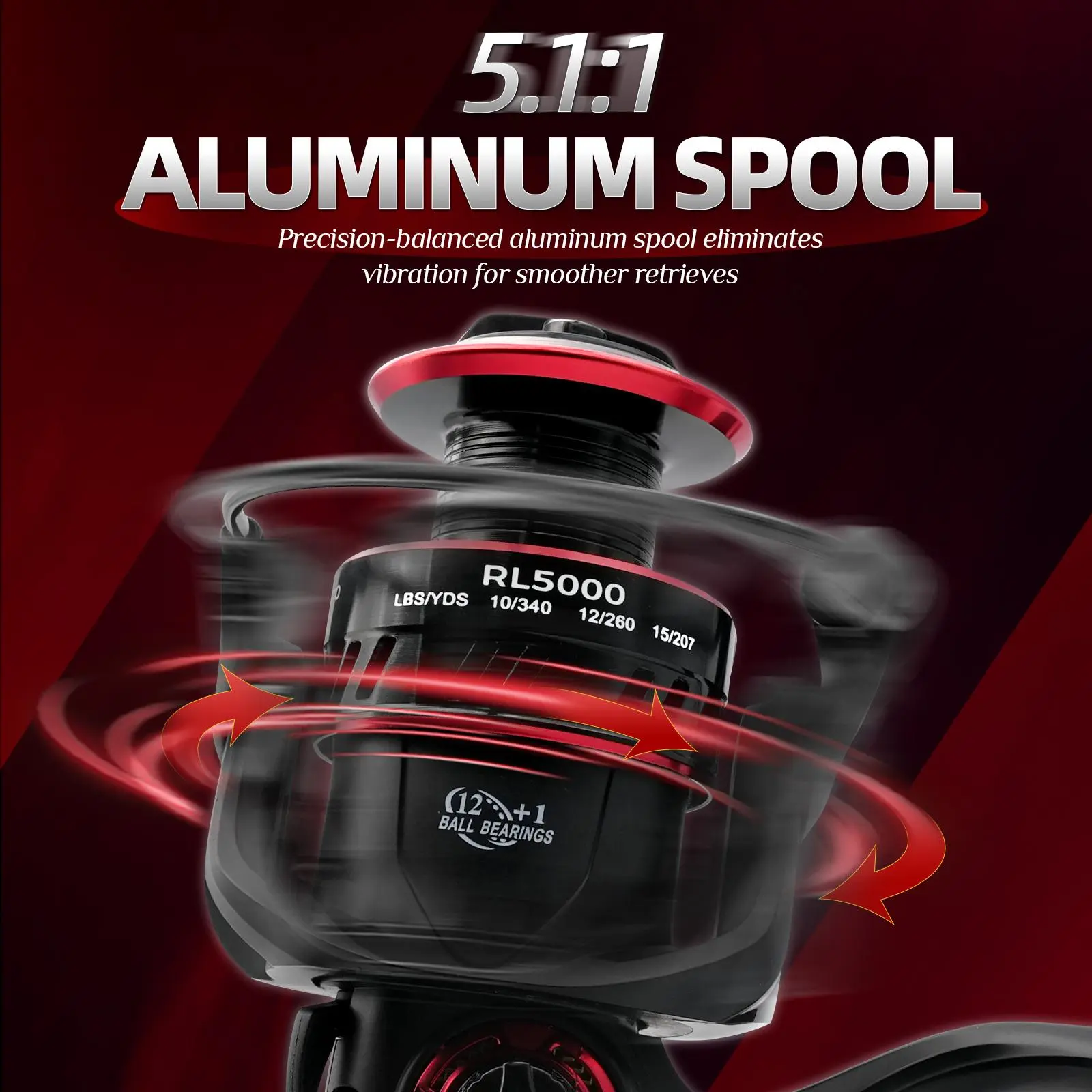 ·5.1:1 High-Speed Gear Ratio: The balanced 5.1:1 gear ratio provides lightning-fast line retrieval, ideal for quickly reeling in aggressive strikes and covering more water with every crank.