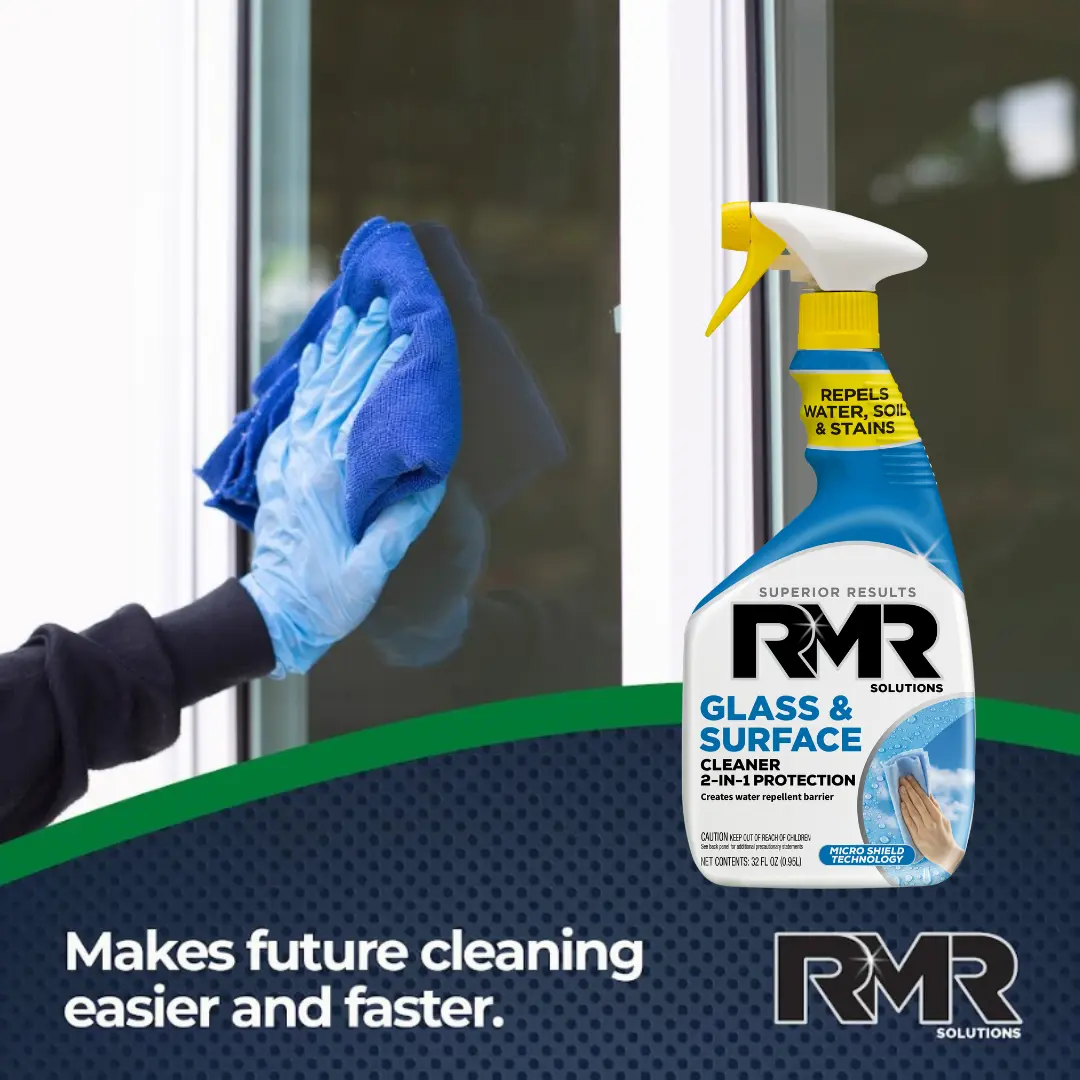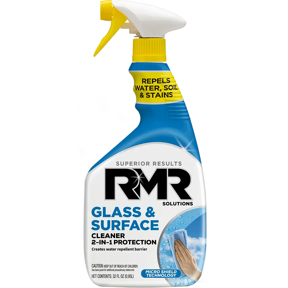 It’s easy to get stuck in a loop where cleaning becomes an endless task. With RMR’s 2-in-1 Glass and Surface Cleaner Plus Repellent, you can prevent future messes while tackling the existing ones. Our dual-action formula removes streaks, marks, dirt, and debris from a wide variety of surfaces while applying a protective coating that repels water and soil. This convenient multi-purpose spray can be misted onto surfaces and wiped clean with a paper towel or microfiber cloth to reveal bright, sparkling clean surfaces in seconds.