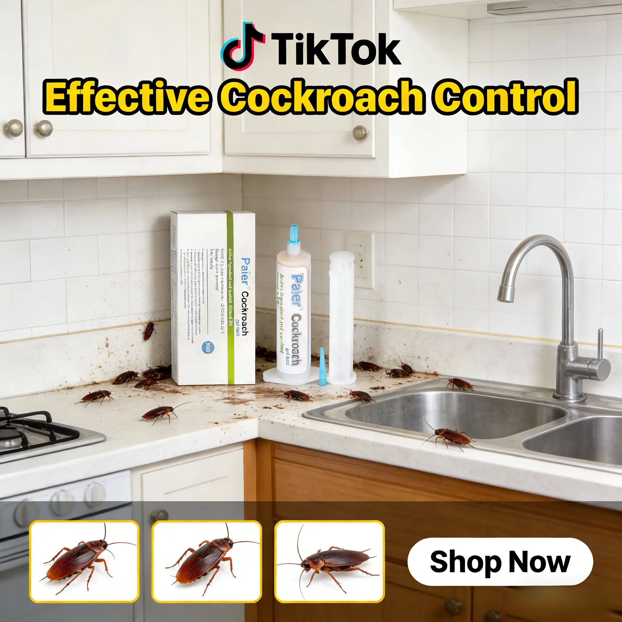 Roach Gel Bait 30g | Kills German & American Roaches | Precision Applicator Tip | 1 / 4 Packs Available