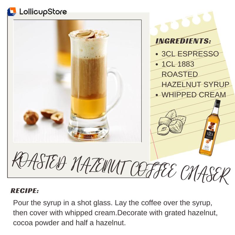 Add the rich, nutty flavor of 1883's Roasted Hazelnut to a tasty hot drink, smoothie, soda or cocktail. This syrup comes in a 1 liter glass bottle. Created and produced in the brand's all-natural birthplace in the French Also, 1883 syrups are recognized for their authenticity, purity, and aromatic intensity.