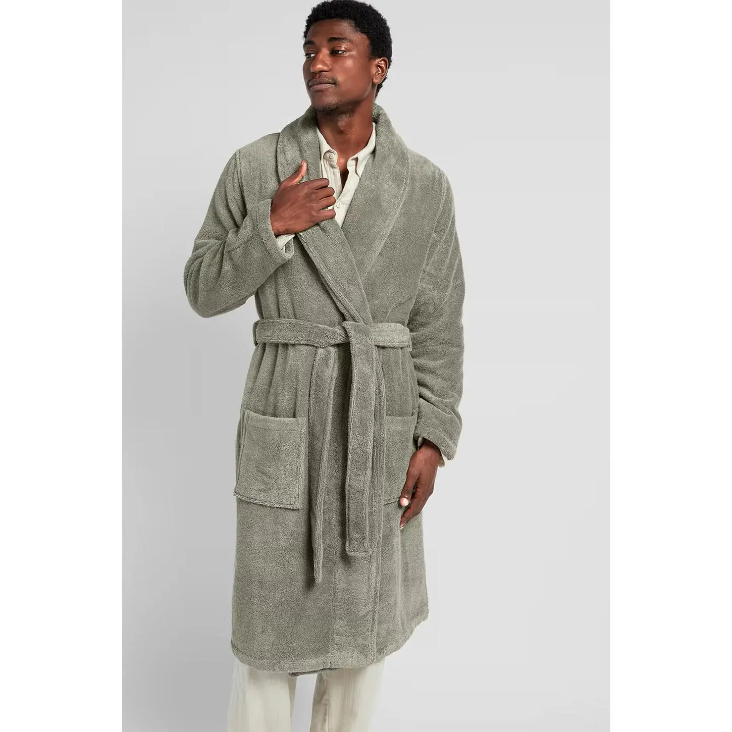 ·With two slouchy front pockets, a snug waist tie and cozy shawl collar, this super plush bathrobe is the ultimate relaxation wear.