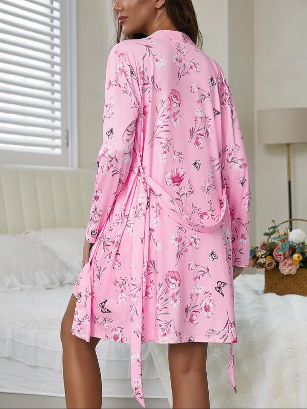 Women's Floral Print Belted Robe & Cami Nightdress Two-piece Set, Casual Comfy Lounge Set for Women, Ladies Sleepwear for All Seasons, Loungewear
