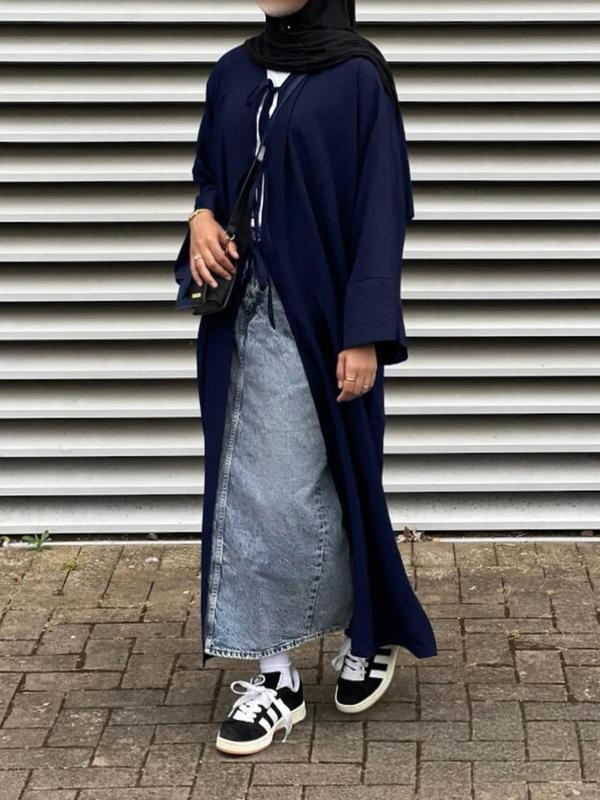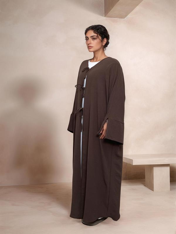 Women's Solid Color Tie Front open abaya!!👗🛒🔥 #abaya #longdress #fyp #ootd   #muslimfashion #abayastyle #modest #islamic #tiktokshopblackfriday #tiktokshopcybermonday #tiktokshopholidayhaul #spotlightfinds