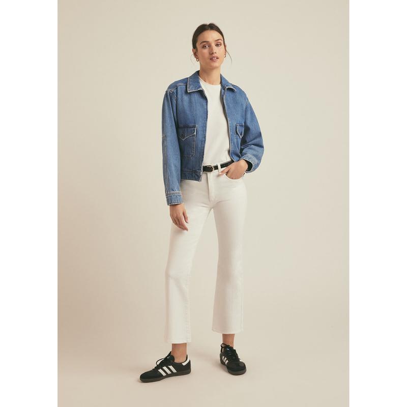 The design is in the details. The Robert Jacket, cut from a medium-blue, stonewashed rigid denim with light handsanding, has all the feautres of your favorite jean jacket (and more). The boxy fit hits just above the hip with a silghtly dropped shoulder and pointed collar. Oversized front patch pockets are outfitted with flaps and slit openings along with elbow patch reinforcements and cool seam details throughout. For a complete set, pair it with The Mischa Utility in the same Paris wash.