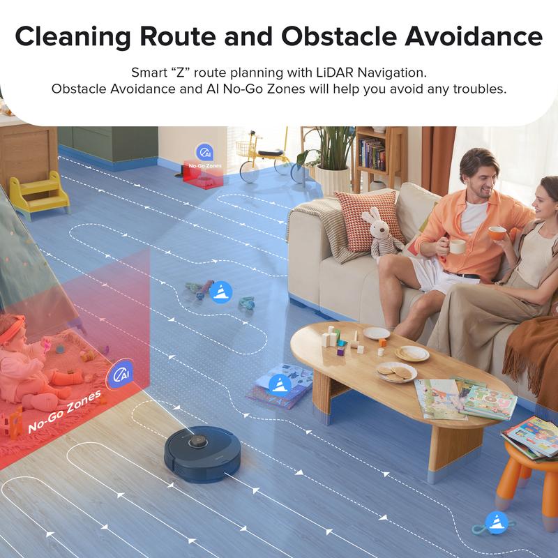 Detects and avoids objects on the floor easily, so you don't have to pick them up before starting a cleanup. By suggesting No-Go Zones for stairs and easy-to-get-stuck places, the Q8 Max can prevent mishaps, allowing you peace of mind while it navigates your home.