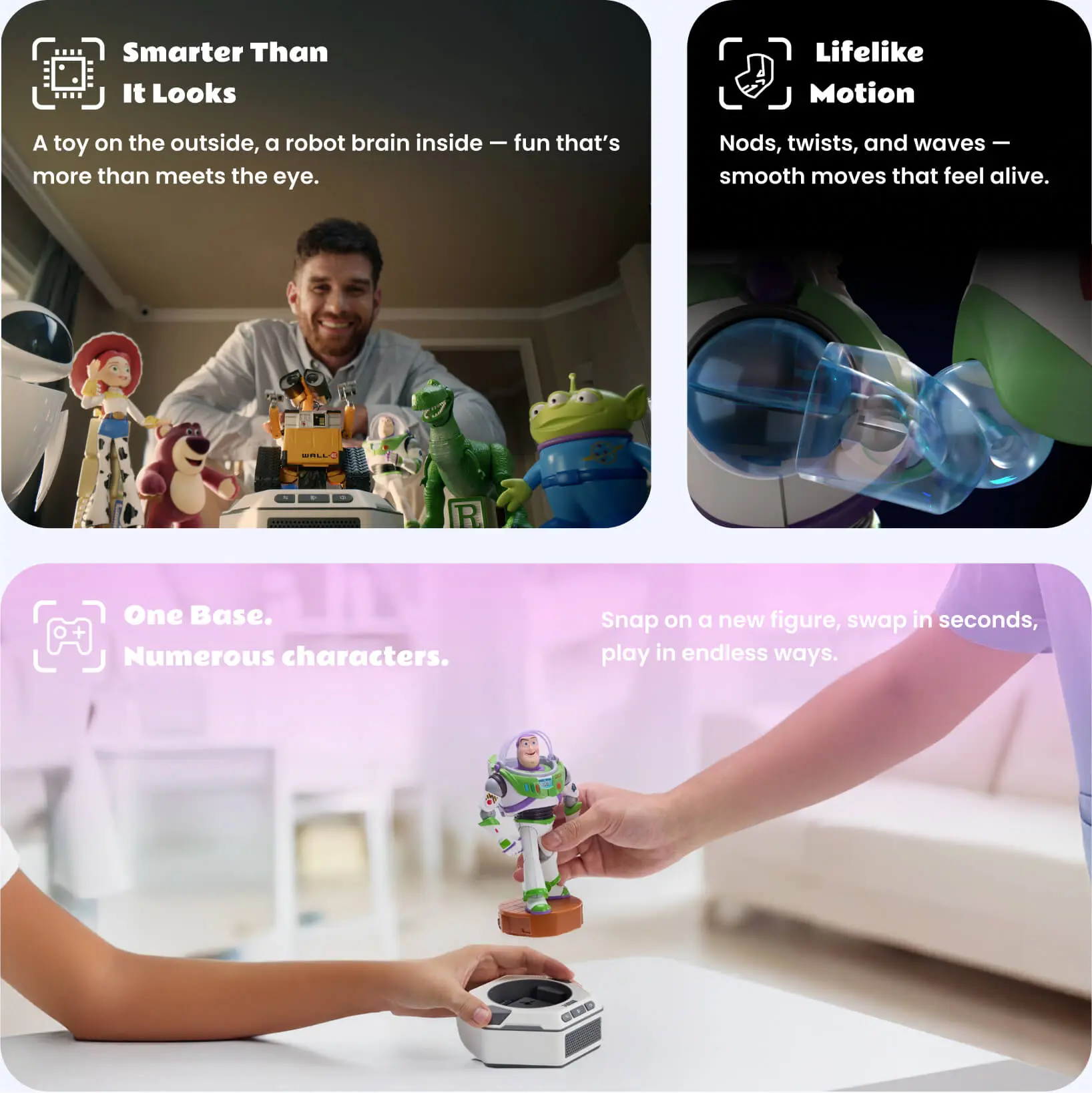 ·One Base, Endless Fun: Snap, swap, and play with different characters in seconds.