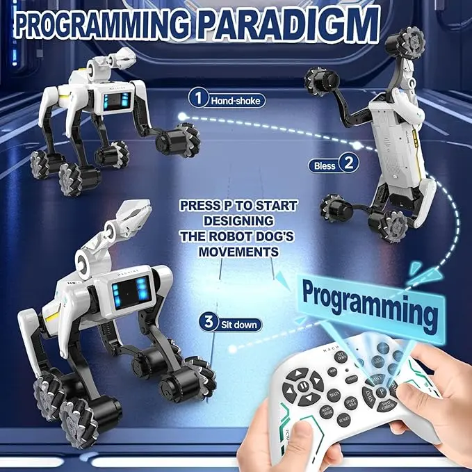【Robot Dog with APP Control】In addition to the remote control, control the robot dog with simple voice commands via app. With supporting programming, not only makes it easy to customize the robot dog behavior and routines, but also is beneficial for kids’ interest to science and technology.