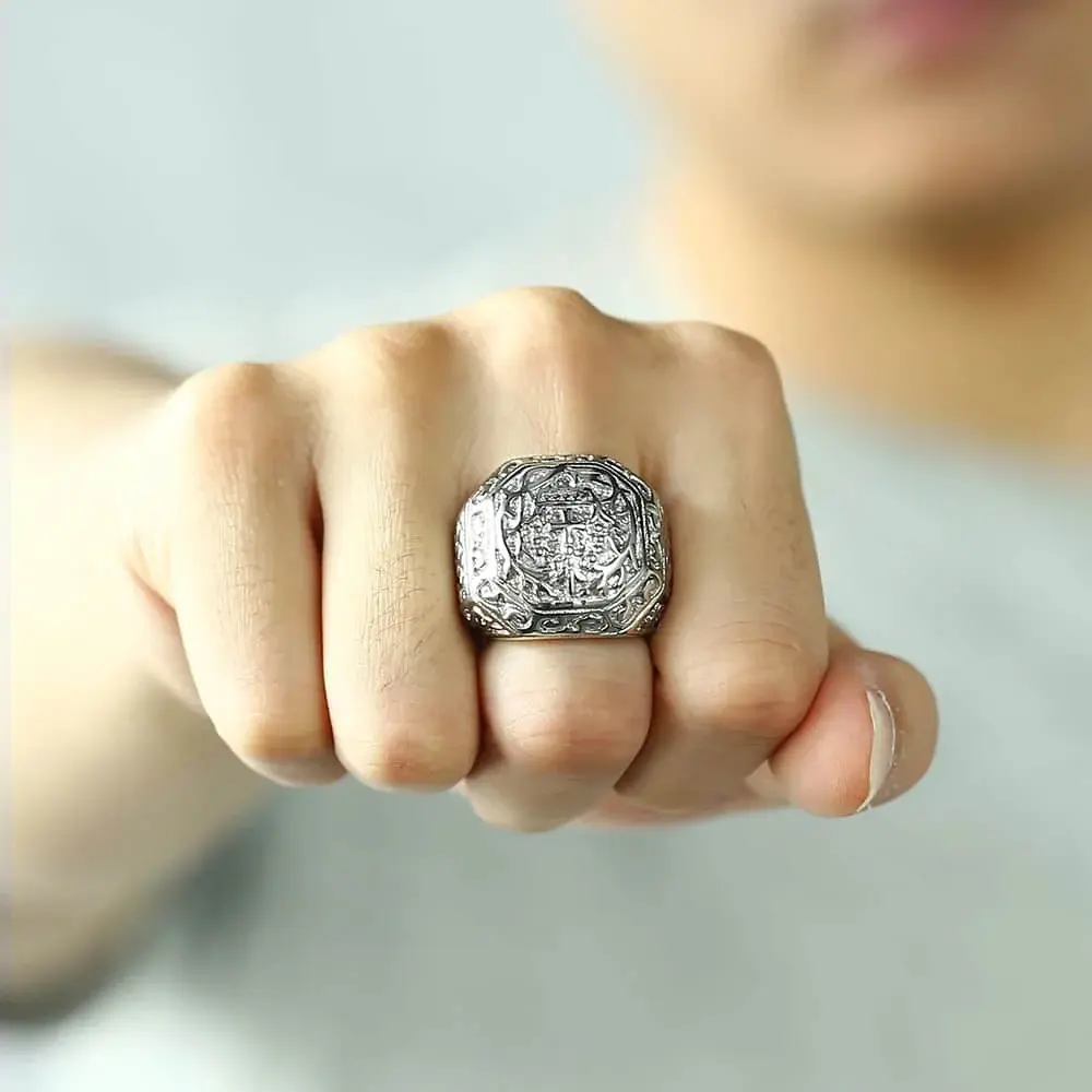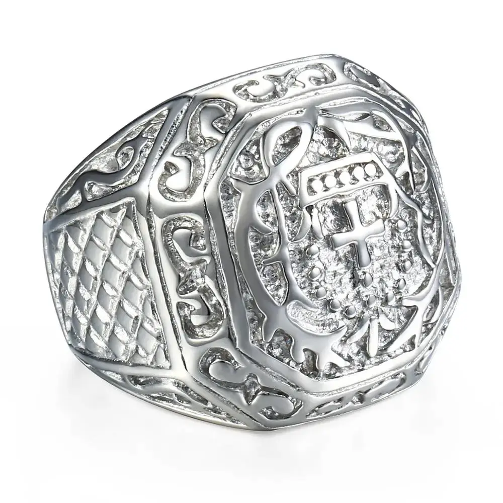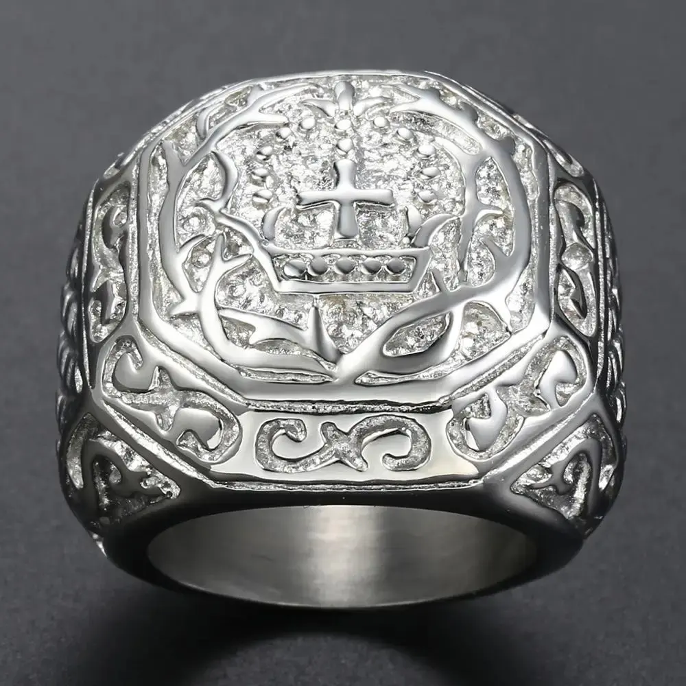 Elevate your style with this exquisite 316L Stainless Steel Men's Rock N Roll Ring, designed to make a statement. This ring features a unique carved cross crown, adding a distinctive touch to your look.