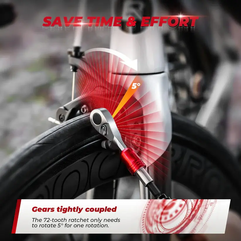 ·MORE SIZE OF WRENCHES AVAILABLE: ROCKBROS ratchet socket set provides more size of wrenches for bike maintenance, including 2.5-8mm Allen wrenches, PH1, T25&30 torx sockets. This wrench set have covered almost all the sizes of wrenches being needed in the bike maintenance. The 1/4’’ driving size also allows it adapt to other 1/4’’ wrenches.