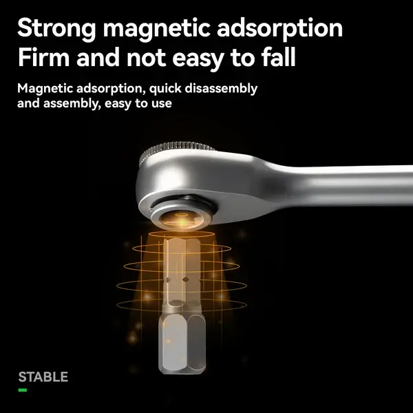 The two-way ratchet design allows you to easily adjust the fastening direction. This saves time during work. A strong magnetic feature ensures that bits stay securely in place while operating. 🔄
