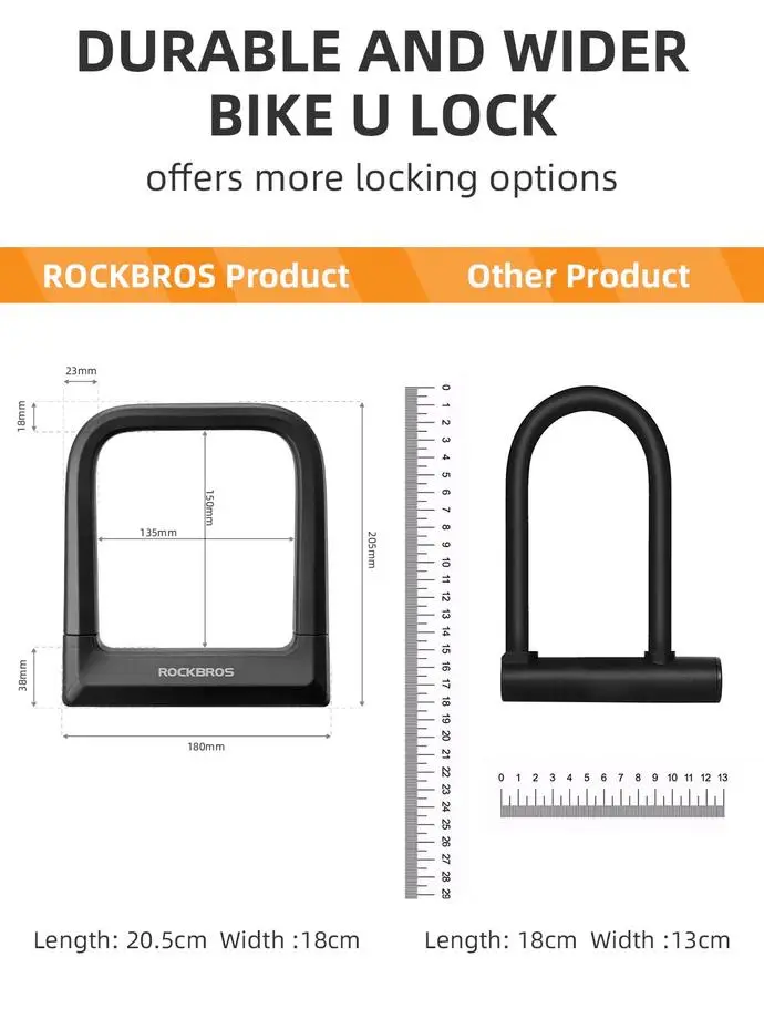 Our bike lock features an 18.76mm U lock. It is designed to withstand bolt cutters and leverage attacks, ensuring maximum protection for your bike. This heavy-duty design provides reliable performance, even in high-risk areas. Keep your bike safe with our robust lock.