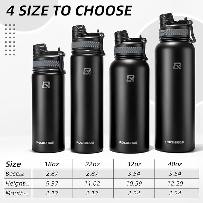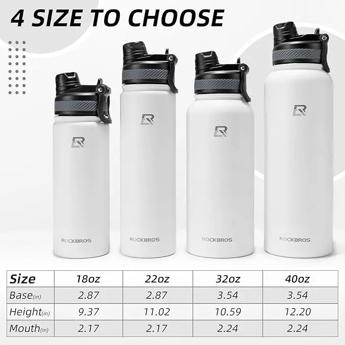 ·4 SIZES TO CHOOSE: ROCKBROS water tumbler cups come in four size:18 oz, 22 oz, 32 oz and 40 oz sizes and two classic colors to choose-black and white, free to choose the bottle according to your actual need!